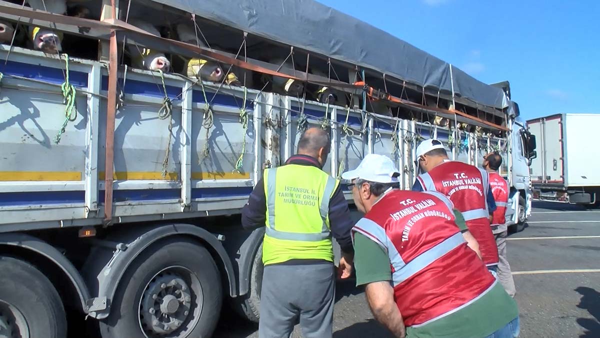 İl dışından gelen sürücülerin evraklarını tek tek inceleyen ekipler, hayvanların küpe numaraları ile evrak üzerindeki numaraları karşılaştırdı. Kontrolü yapılan araçlar, hayvan pazarlarına doğru yoluna devam etti. Gece yarısından itibaren İstanbul’a yaklaşık 100 aracın giriş yaptığı öğrenilirken, denetimler havadan da görüntülendi.