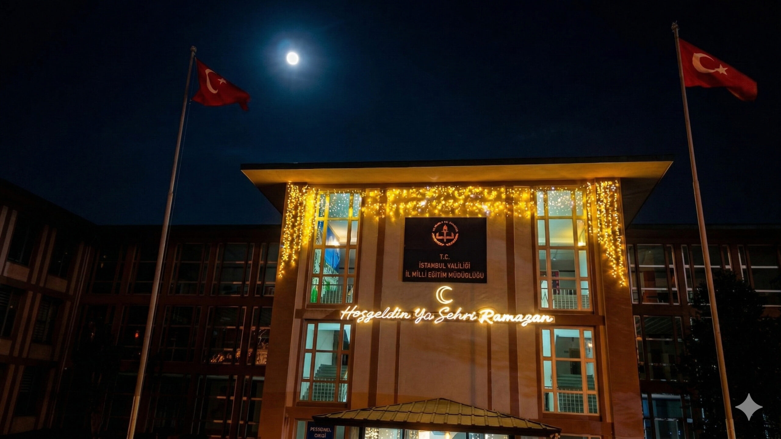 İl Millî Eğitim Müdürü Murat Mücahit Yentür Ramazan'ın terbiye, incelik ve bir değerler mevsimi olduğunu vurguladı. Yentür, "Ramazan, insanın kalbini, dilini, niyetini ve istikametini terbiye eden müstesna bir zaman dilimidir. Bizler eğitim camiası olarak, bu mübarek ayın taşıdığı rahmet, merhamet, paylaşma ve kardeşlik iklimini okullarımızın duvarlarında, koridorlarında, bahçelerinde ve şehirle buluşan yüzlerinde de görünür kılmak istedik" ifadelerini kullandı.Yentür ışıklandırmaların yalnızca estetik bir uygulama olmadığına da değinerek, "İstanbulumuzun farklı noktalarında yer alan okullarımızda ve İl Millî Eğitim Müdürlüğümüz binasında gerçekleştirilen çalışmalar; estetik anlayışı, Ramazan'ın kuşatıcı maneviyatını ve eğitimin insana dokunan yönünü aynı zeminde buluşturan bir niyetin tezahürüdür. İstedik ki çocuklarımız, gençlerimiz, öğretmenlerimiz, velilerimiz ve bu aziz şehri ziyaret eden misafirlerimiz; Ramazan'ın aydınlığını gören, yaşayan ve hatırlayan bir iklimin içinde olsun" dedi.