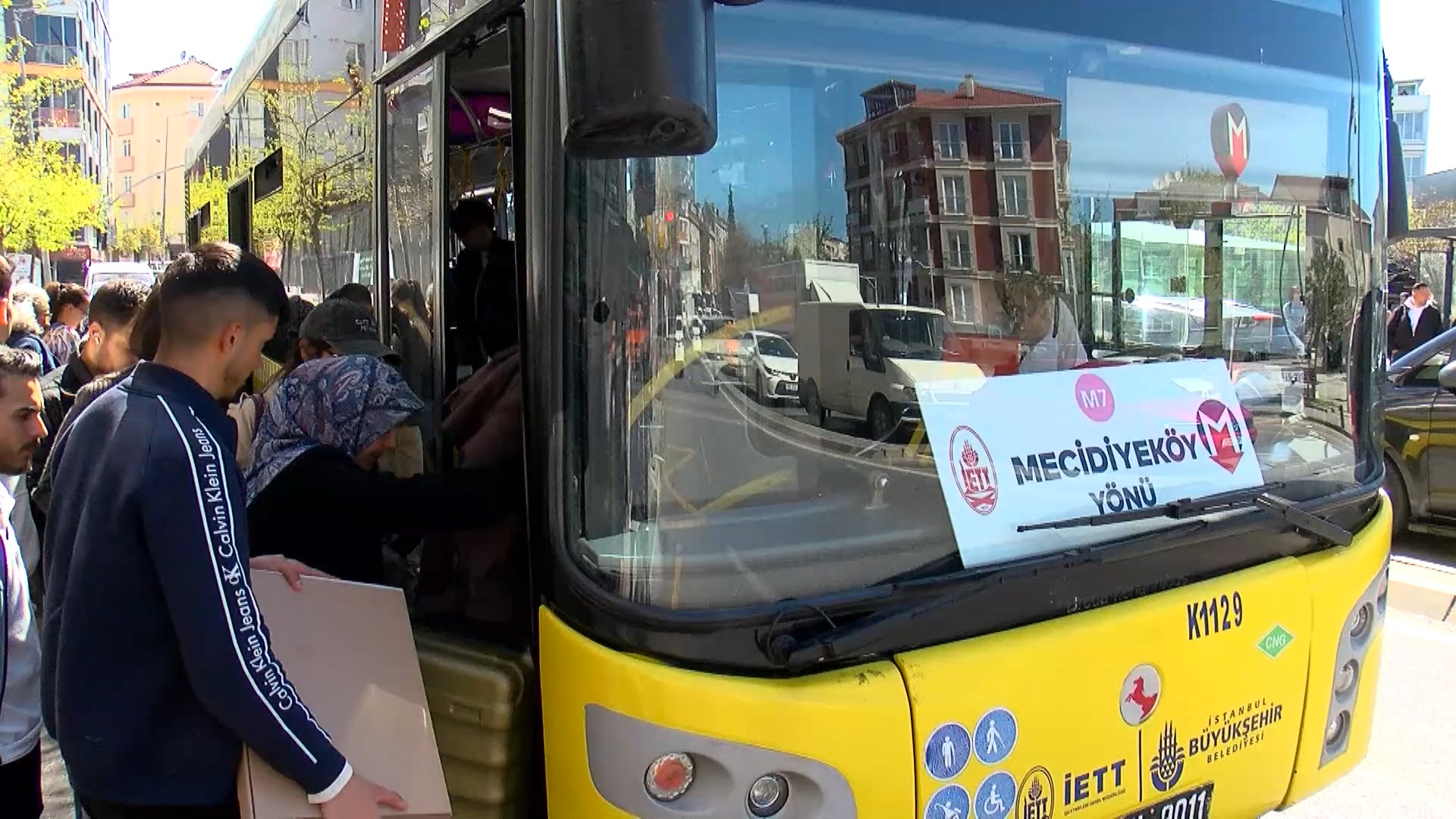 Nurtepe-Mecidiyeköy durakları arası seferler İett otobüsleriyle ücretsiz sağlanırken, yolcuların oluşturduğu yoğunluk uzun kuyruklara neden oldu.