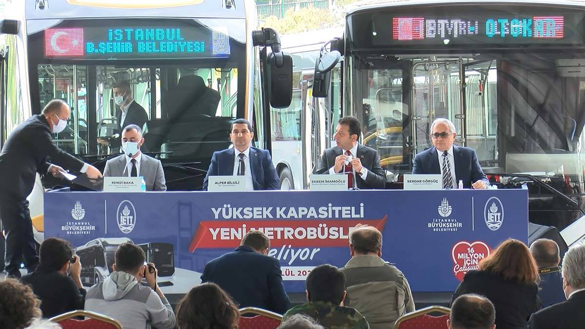 İstanbul’da metrobüs filosunun yenilenmesi için 160 yeni metrobüs aracının alım töreni İstanbul Büyükşehir Belediyesi (İBB) Başkanı Ekrem İmamoğlu’nun katılımıyla gerçekleştirildi. İmza törenin ardından Ekrem İmamoğlu örnek olarak getirilen 2 yeni metrobüsten birinde ilk yolculuğu yaparken, yeni metrobüsler 2022 yılında hizmet vermeye başlayacak.