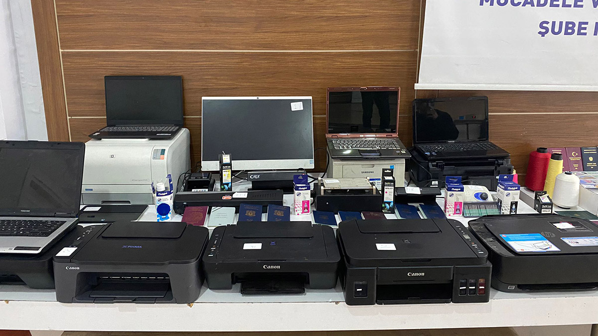 Adreste yapılan aramada; 42 farklı ülkeye ait 113 adet kimlik kartı, 90 adet boş kimlik kartı, 15 farklı ülkeye ait 27 adet Pasaport, 21 farklı ülkeye ait boş 22 adet pasaport kapağı, 5 farklı ülkeye ait kimlik bilgileri olmayan 9 pasaport, 31 farklı ülkeye ait 439 adet pasaport ve vize yaprağı, 13 adet farklı ülkelere ait boş kimlik, 785 adet hologram filigran, 510 adet boş pasaport kimlik benzeri değerli kağıt..