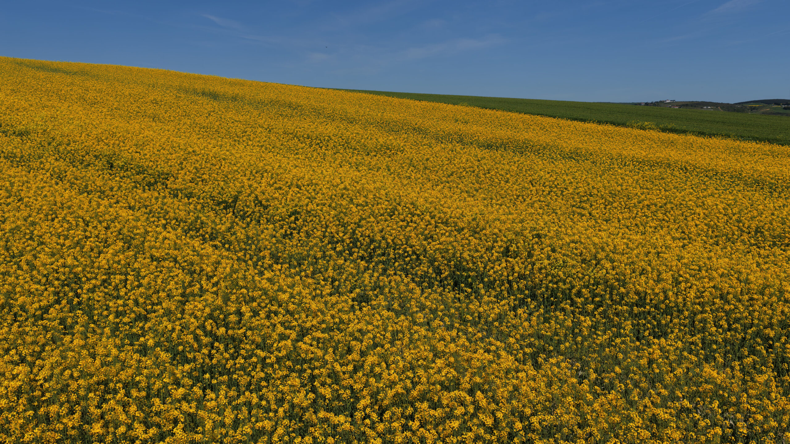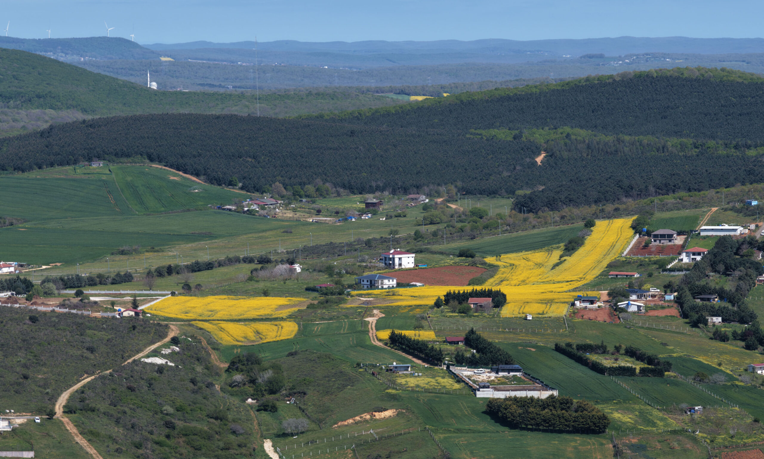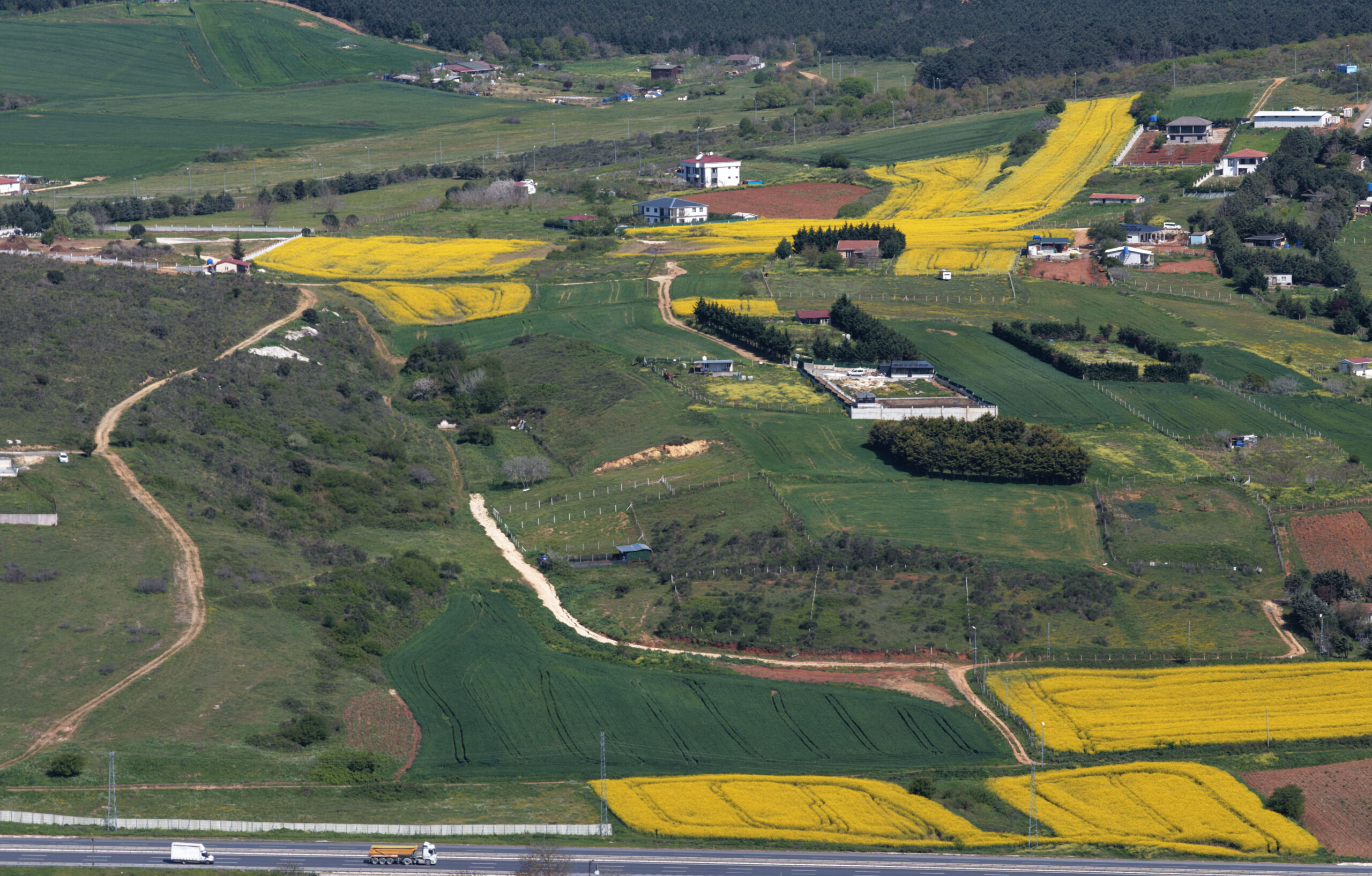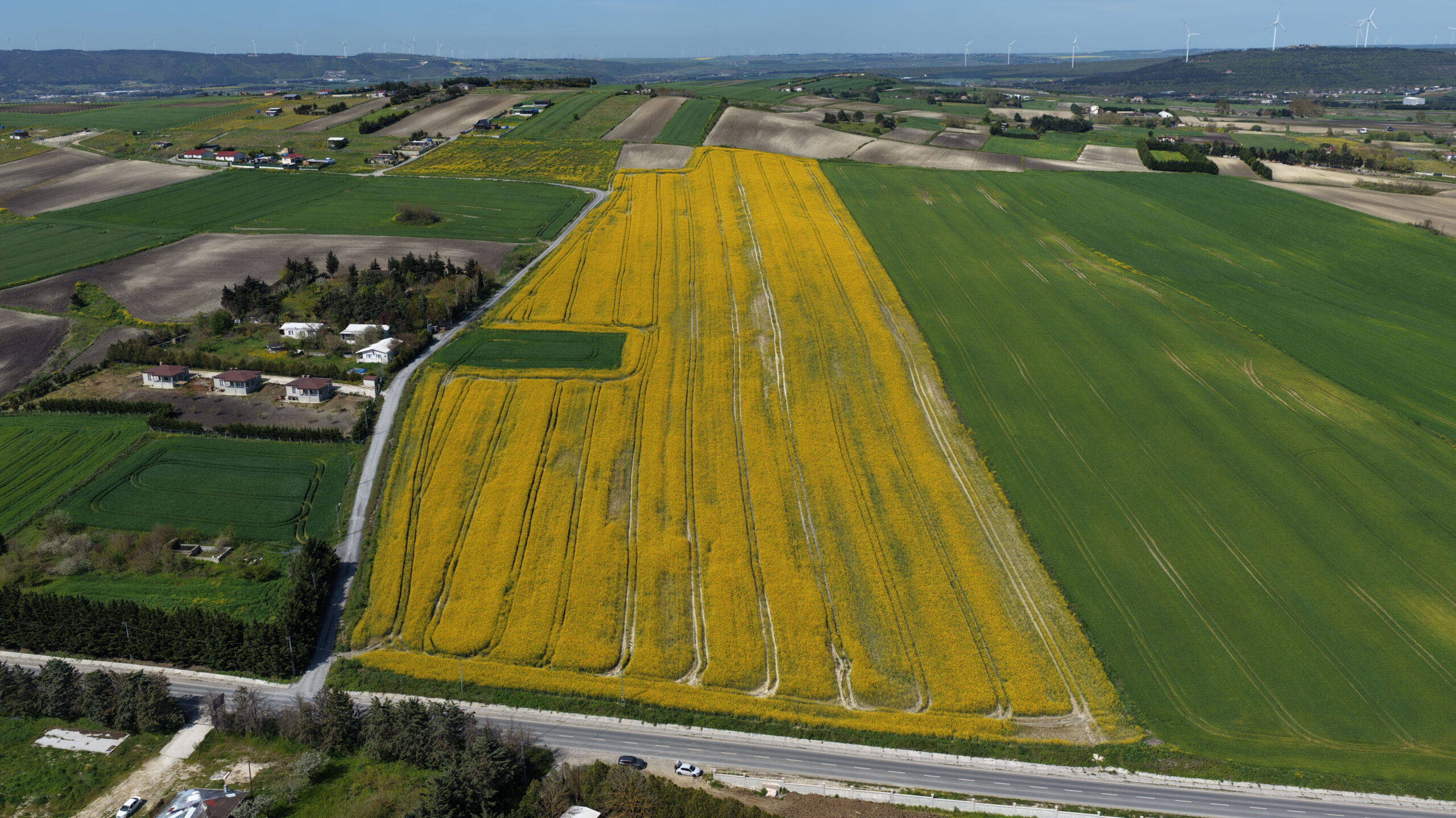 İstanbul’da ilkbaharın gelmesiyle birlikte ‘sarı altın çiçek’ olarak bilinen kanola bitkisi çiçek açtı. Sonbaharda ekilen, aralık ayında yapraklanan kanola, havaların ısınmasıyla sarı çiçeklerini açarak tarlaları renklendirdi. Sarı ve yeşil tonların iç içe geçtiği manzara, Çatalca’da dron ile havadan görüntülendi. Ayçiçeğine alternatif olarak ekilen ve bitkisel yağ üretiminde kullanılan kanolada, son bir aydır etkili olan yağışlar nedeniyle verimin yüksek olması bekleniyor.