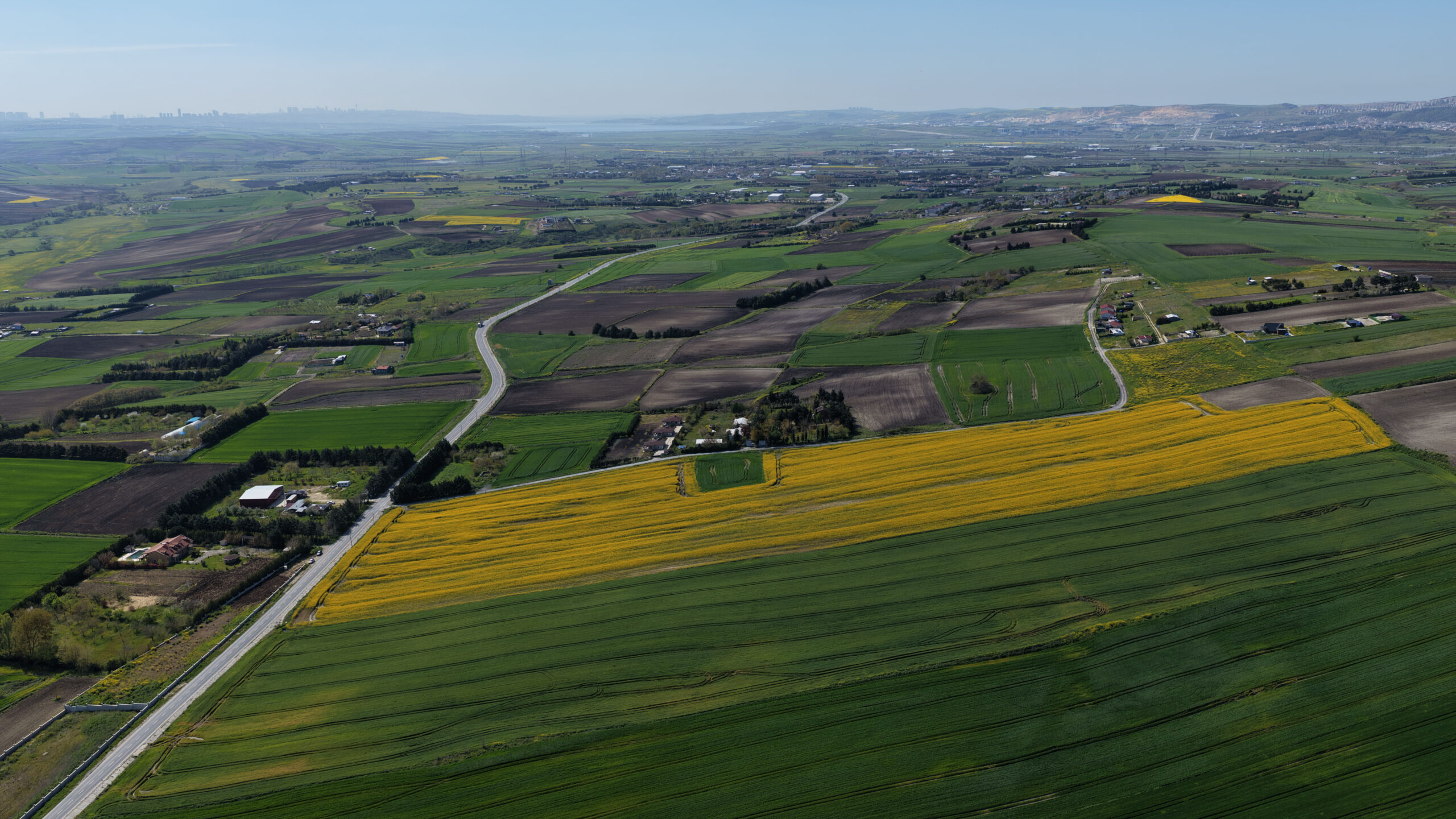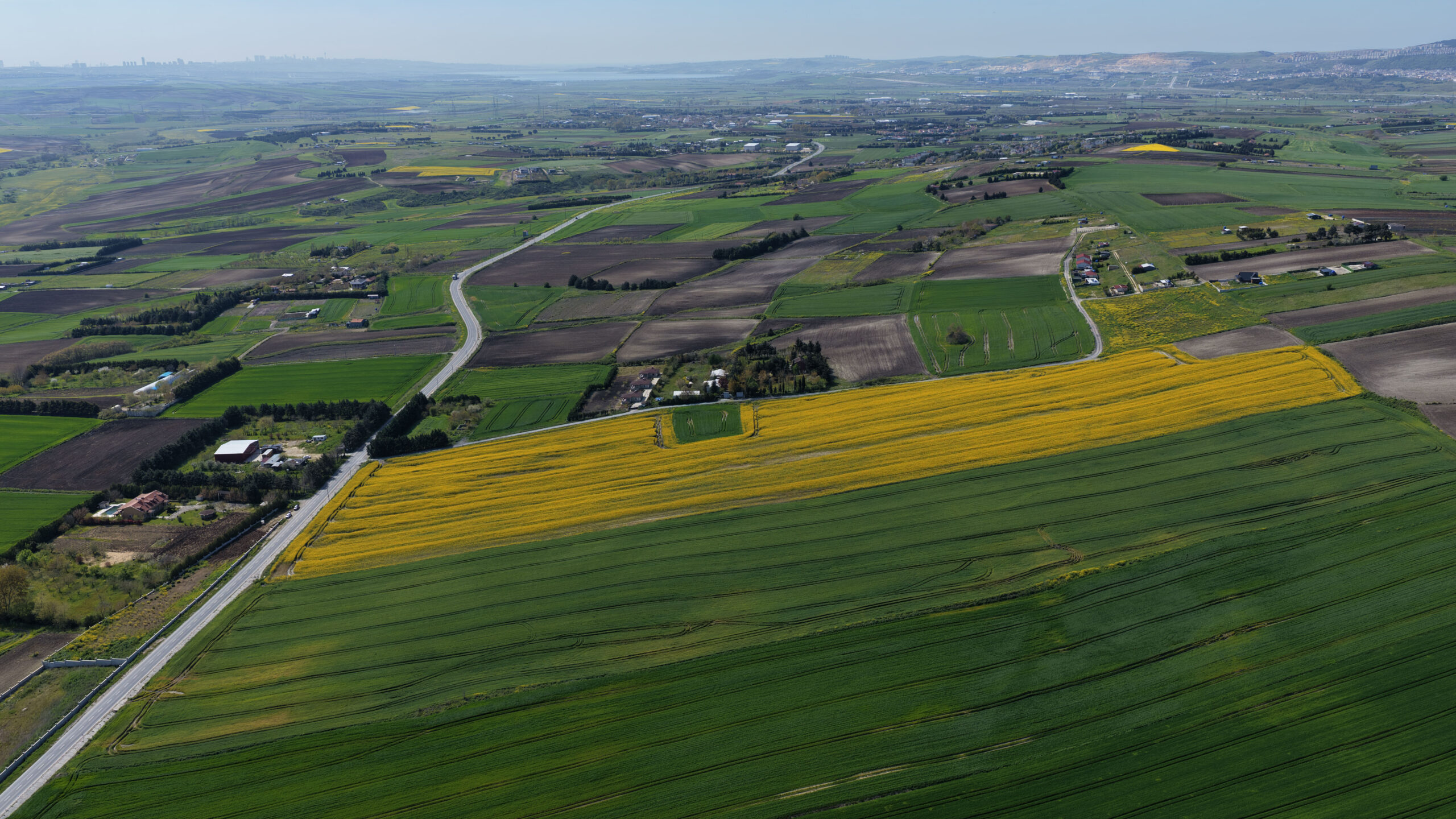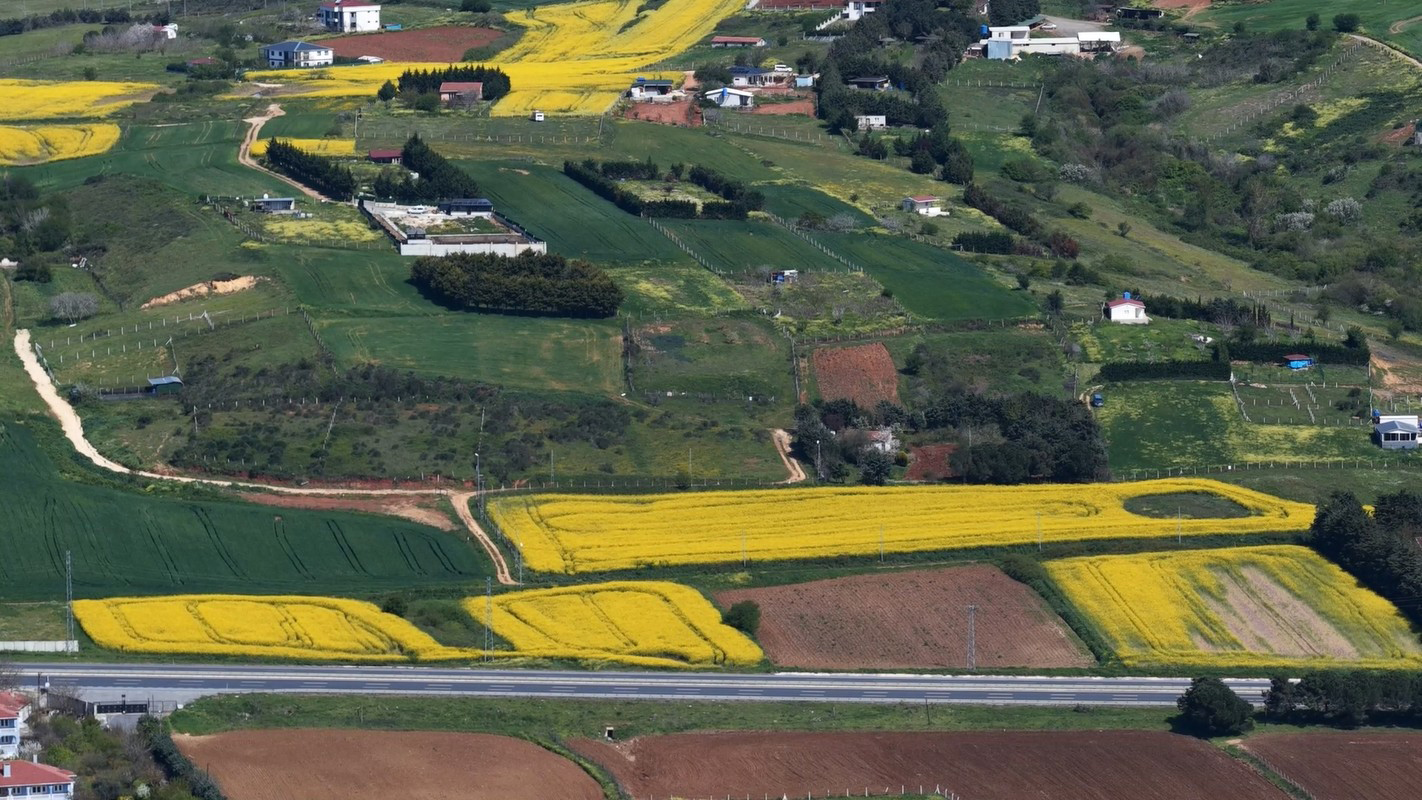 İstanbul’da çiftçilerin ‘sarı altın çiçek’ olarak adlandırdığı kanola tarlaları sarıya büründü. Çatalca’da havaların ısınmasıyla birlikte çiçek açan kanolaların oluşturduğu görsel şölen havadan görüntülendi.