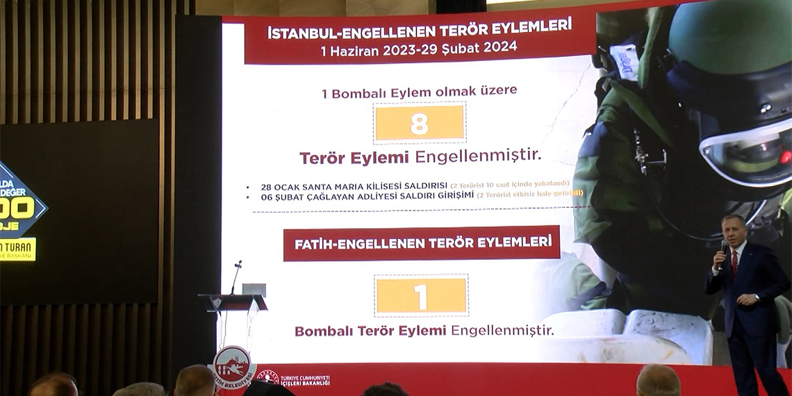 Biz bu noktada da göz açtırmıyoruz. Sadece İstanbul rakamları bunlar. Terörizme finans sağlayanlara yönelik 18 operasyon 154 gözaltı, 27 tutuklama, 5 milyon 477 bin 324 lira ele geçirildi. Şimdi bu terör örgütleriyle ilgili evet bunları yaptık, aldık ama bakın yine aynı dönemde bir bombalı eylem olmak üzere 8 terör eylemini engelledik. Türkiye genelinde bu rakam 125’di. İstanbul’da 8, ama 28 Ocak’ta DEAŞ Santa Maria Kilisesi saldırısı 2 terörist İstanbul Emniyetimiz 10 saatte ne yaptı? Aldık adalete teslim ettik” dedi.