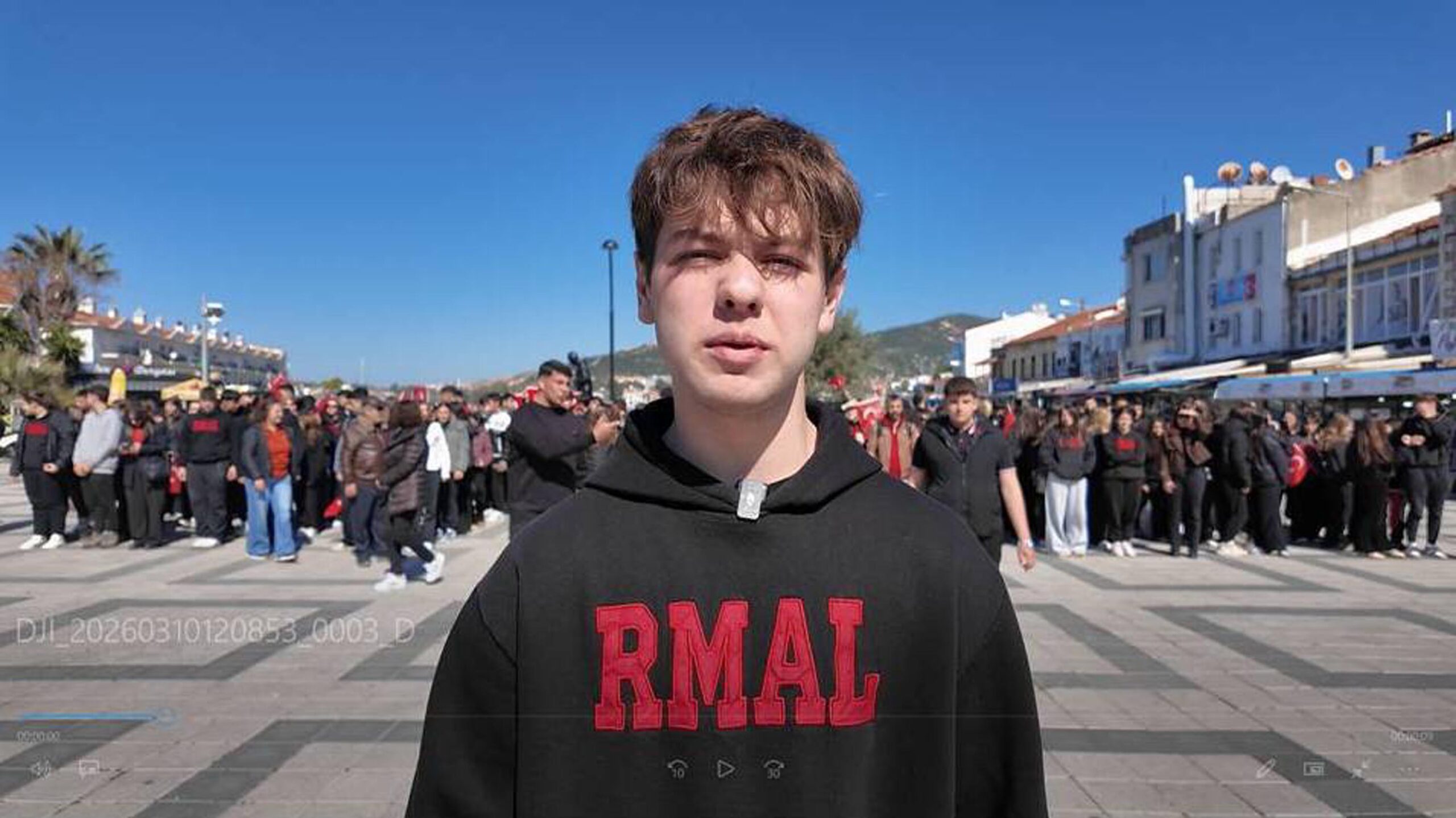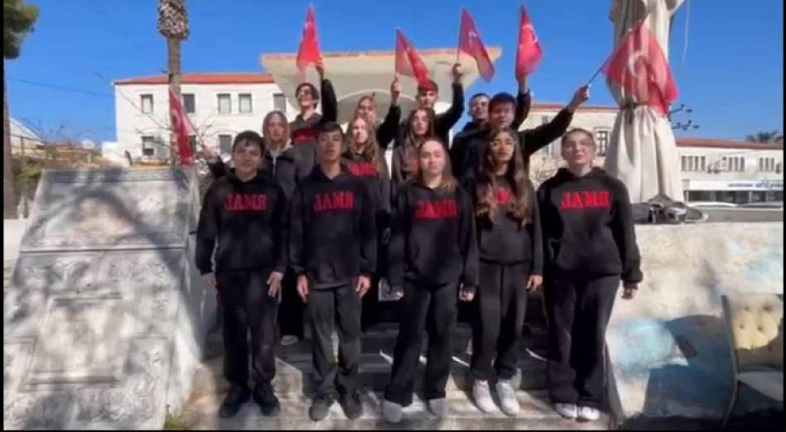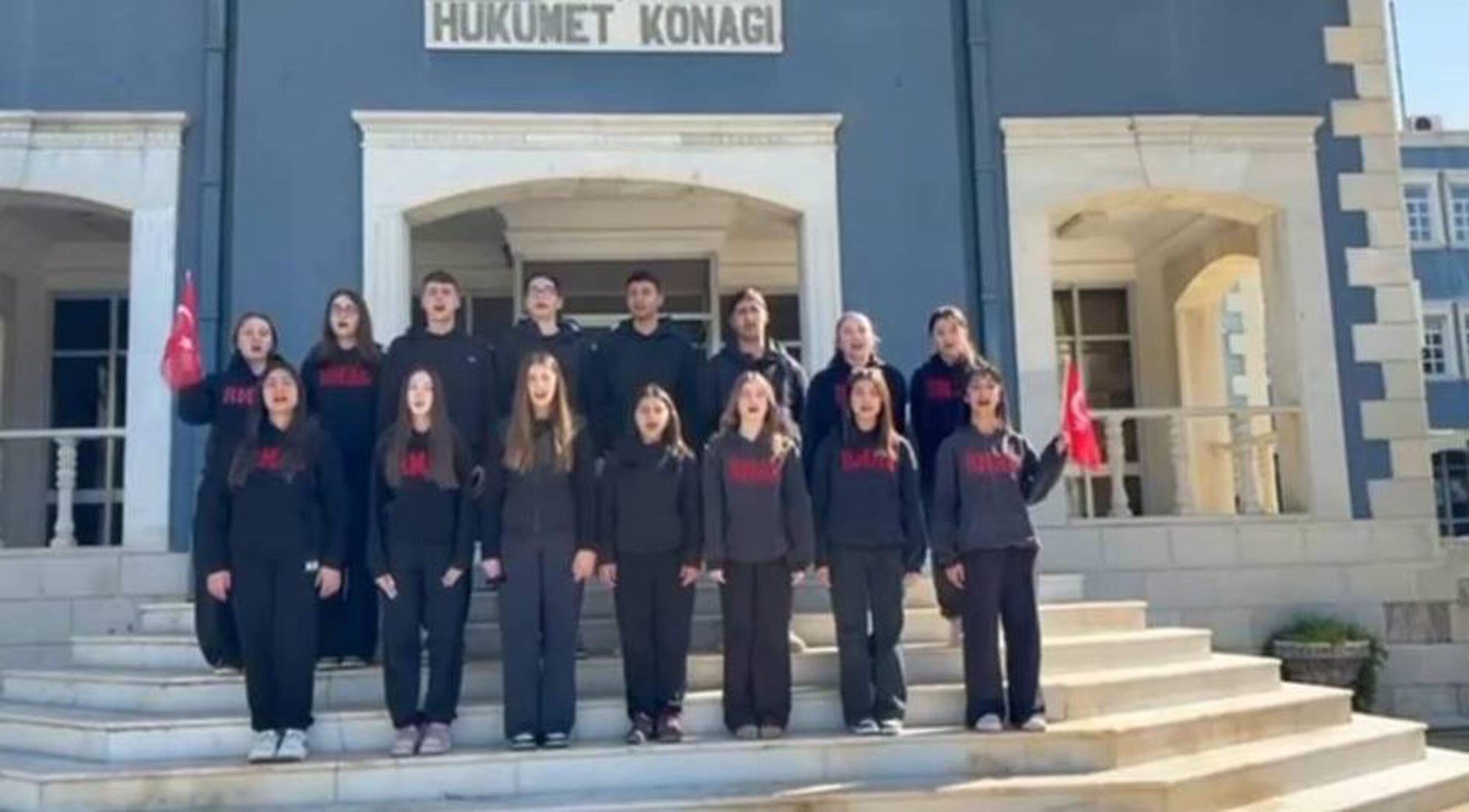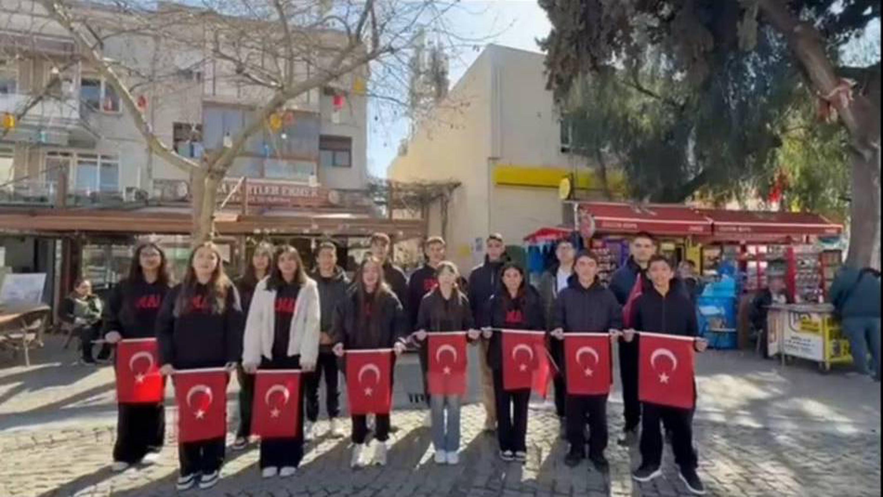 İzmir'in Foça ilçesindeki Reha Midilli Anadolu Lisesi öğrencileri, kabulünün 105'inci yıl dönümü dolayısıyla İstiklal Marşı'nın her kıtasını ilçenin ayrı bir noktasında seslendirdi.