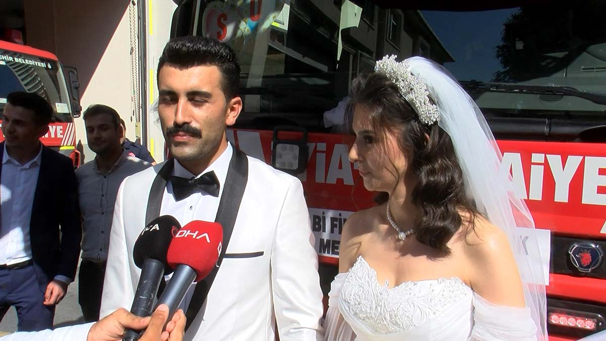 Gelin Şeyda Balaban ise “Ben itfaiye arabasının gelin arabası olmasını çok istiyordum. Sağ olsunlar ayarladılar. Herkese çok teşekkür ederim” diye konuştu.