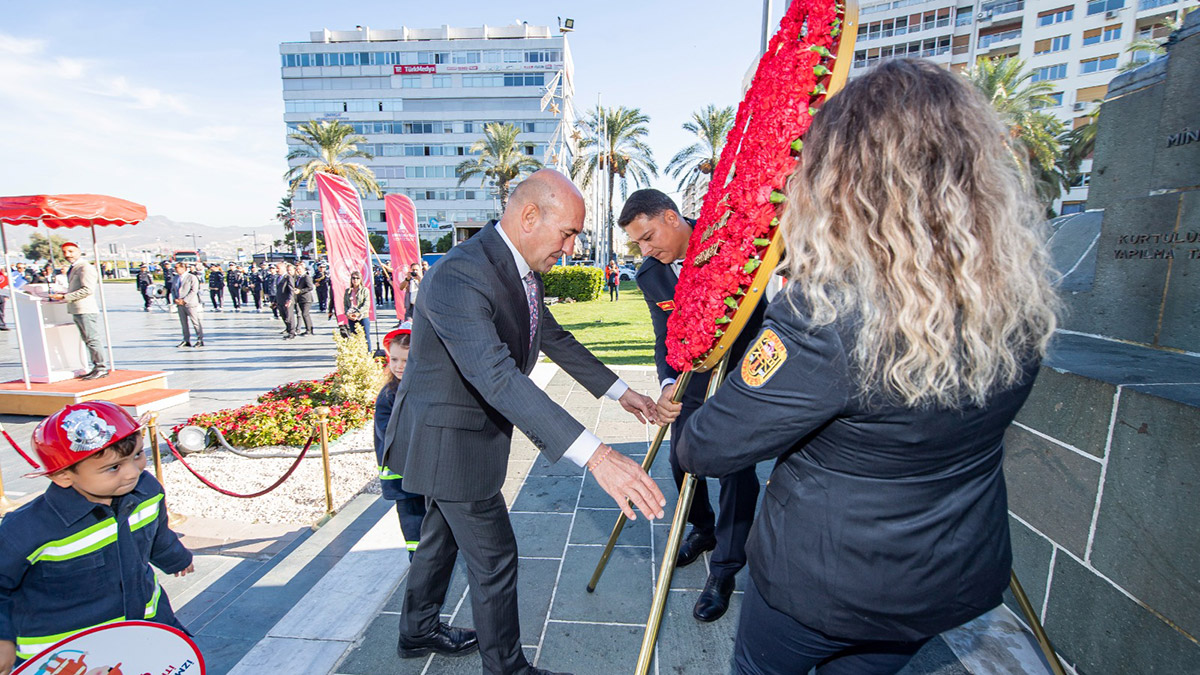 İzmir Büyükşehir Belediyesi İtfaiye Dairesi Başkanlığı, İtfaiye Teşkilatı’nın 99’uncu kuruluş yıldönümü nedeniyle Cumhuriyet Meydanı’nda tören düzenledi. İzmir Büyükşehir Belediye Başkanı Tunç Soyer’i alana gelişte Çocuk Kulübü üyesi 5 yaşındaki Beren Karaduman ile 4 yaşındaki Sercan Bıçakçı karşıladı. Atatürk Anıtı’na çelenk sunulmasıyla başlayan törene İzmir Büyükşehir Belediye Başkanı Tunç Soyer, CHP İzmir Milletvekili Atila Sertel, İzmir Büyükşehir Belediyesi Genel Sekreter Yardımcısı Şükran Nurlu, İzmir Büyükşehir Belediyesi İtfaiye Dairesi Başkanı İsmail Derse ile belediye bürokratlar ve itfaiye personeli katıldı.