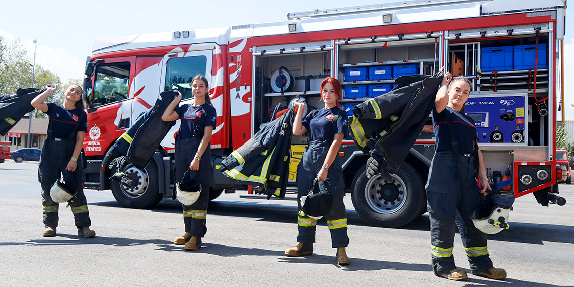 Antalya İtfaiyesi’nin 4 kadın personeli, erkek meslektaşları tarafından istasyonun ‘kadın gücü’ olarak adlandırılıyor. Koruyucu kıyafetlerle göreve giden, bu nedenle erkek meslektaşlarından ayırt edilemeyen kadın itfaiyeciler, olay yerinde de erkek sanılarak ‘Ağabey, birader’ hitaplarıyla karşılaşıyor. Görevleri bitip, maskelerini çıkarınca vatandaşın şaşkın bakışlarıyla karşılaştıklarını anlatan kadın personel, ‘Siz kadın mıydınız?’ sorusunu sıkça duyduklarını söyledi.