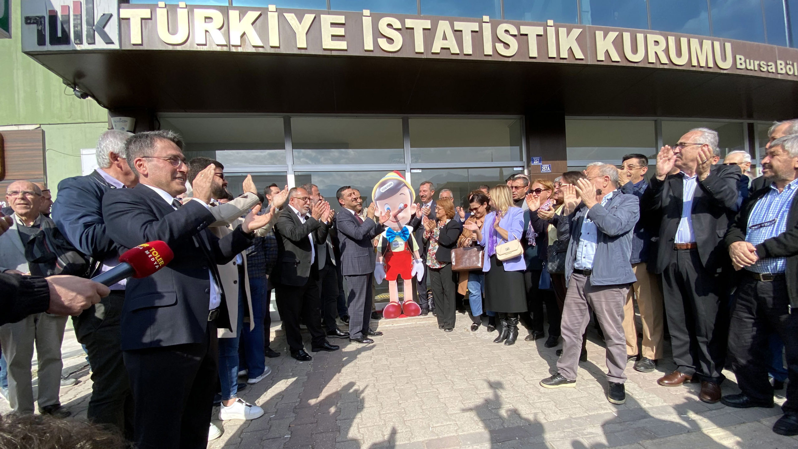 Basın açıklamasının ardından İl Başkanı Selçuk Türkoğlu ve parti üyeleri, yanlarında getirdikleri masal kahramanı Pinokyo’nun maketini TÜİK Bursa Bölge Müdürlüğü’nün kapısına bırakarak bölgeden ayrıldı.
