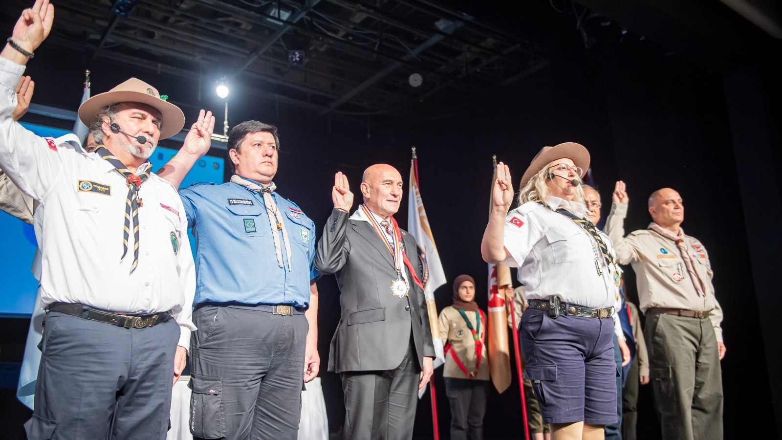 Uluslararası izci liderleri İzmir Büyükşehir Belediye Başkanı Tunç Soyer’e teşekkür plaketi verdi. Ayrıca Başkan Soyer’e ISVG Başkanı Dr. Dikpal Baıdya berat ve onur madalyası taktı. WOIS Kurucu Başkanı Hugo Panıagua da Soyer’e İzciliğe Hizmet Sertifikası sundu.