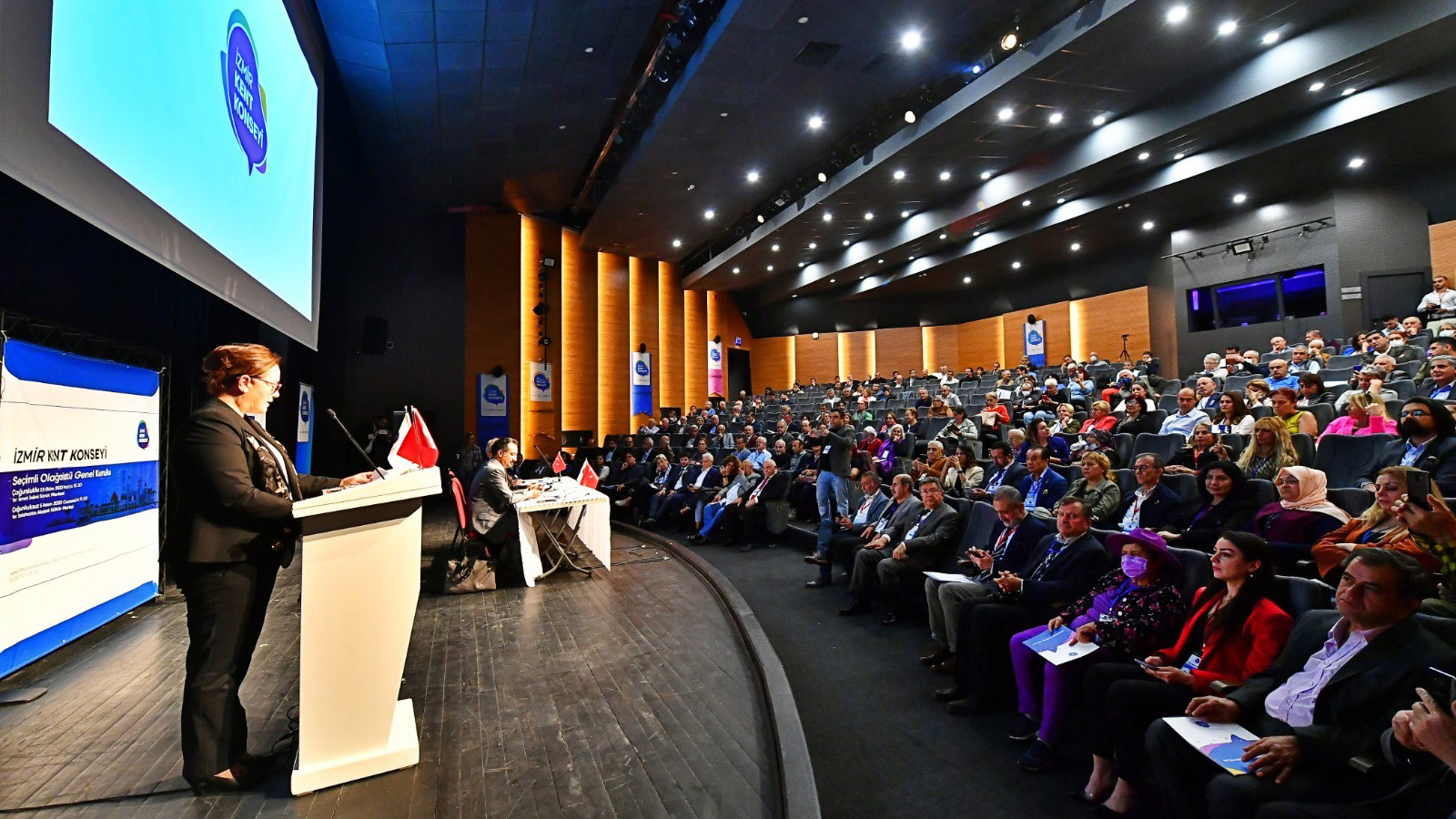 Kültürpark İsmet İnönü Sanat Merkezi’nde yapılan İzmir Kent Konseyi Seçimli Olağanüstü Genel Kurulu’na İzmir Büyükşehir Belediyesi Başkan Vekili Mustafa Özuslu, İzmir Kent Konseyi Başkan Vekili Doğan Albayrak, Türkiye Kent Konseyleri Platformu 26. Dönem Başkanı-Odunpazarı Kent Konseyi Başkanı İsmail Kumru, Nilüfer Belediye’sinin eski başkanı Mustafa Bozbey, sivil toplum örgütleri ve siyasi partilerin temsilcileri, oda birlik ve kooperatif başkanları, kent konseyi üyeleri ve muhtarlar katıldı.