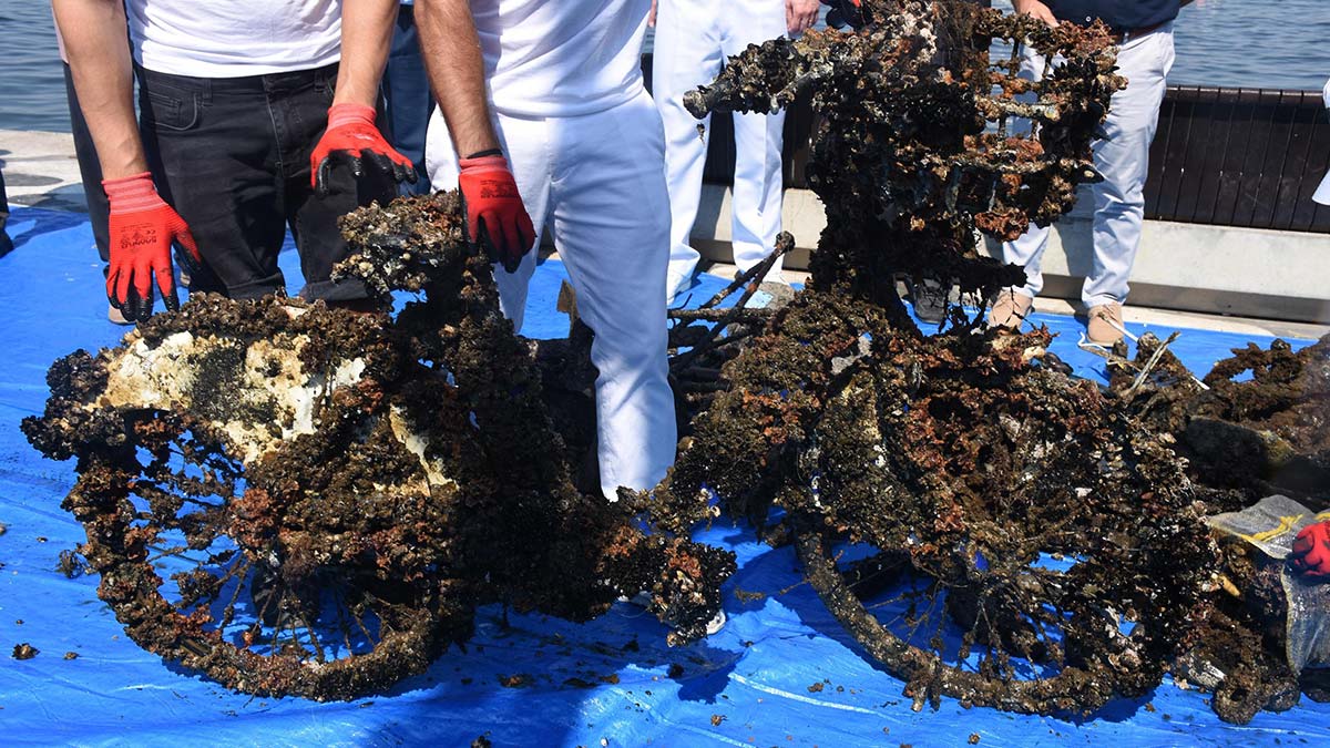 İzmir Körfezi’ni temizlemek için hayata geçirilen ‘Atıksız Körfez Dönüşen Gelecek’ projesi kapsamında ilk dalış gerçekleştirildi. Dalgıçların karaya çıkardıkları atıklar arasında olta, şişe, sandalye ile bisiklet dikkati çekti.
