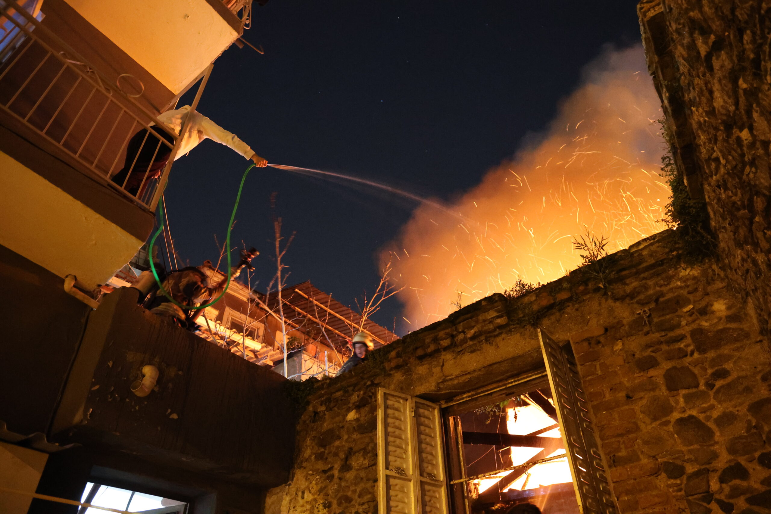 İzmir’in Konak ilçesinde 2 katlı evde çıkan yangın, itfaiye ekiplerinin müdahalesiyle bitişikteki binalara sıçramadan söndürüldü.