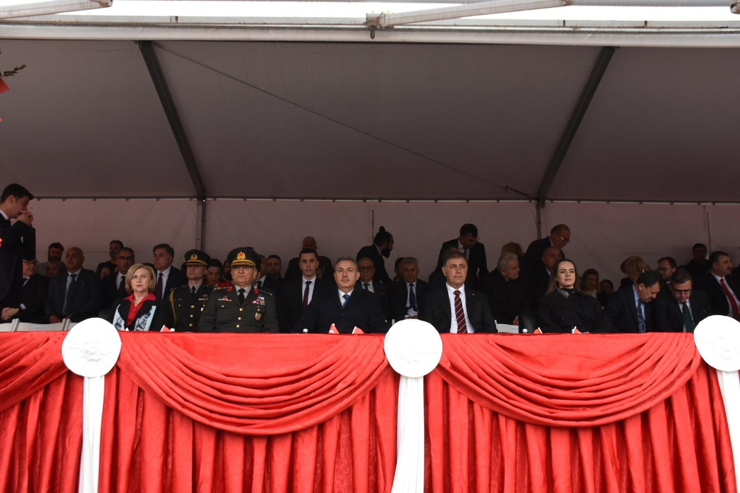 İl Milli Eğitim Müdürü Ömer Yahşi, törende yaptığı konuşmada, “Uğruna emsali görülmemiş bedeller ödenen bu mukaddes vatan toprağının her karışında kahraman ecdadımızın hayalleri, rüyası, duası var. Milletçe yüreğimizi aynı yerden sızlatan büyük bir acının içinden geçtiğimiz bugünler, kalplerimizde derin bir iz bırakırken evlatlarımıza dair mesuliyetimizi daha da derinleştirmektedir. Bu millet, en çetin zamanlarında dahi evlatlarını istikbalinin teminatı görmüş, onları yetiştirmeyi ve korumayı asli vazifesi bilmiştir. Bu topraklar nice badireler atlattı. Her seferinde en sağlam cevabını aklıyla, irfanıyla ve maarifiyle verdi. Bizler, büyük Türk milleti olarak hiçbir zaman korkunun, zulmün, karamsarlığın veya yılgınlığın tarafı olmadık. İnancın, azmin, sabrın ve istikbali inşa ve imar eden sarsılmaz bir iradenin safındayız. Bu yüzden 23 Nisan, yalnız bir bayram değil, bir milletin en çetin zamanlarda dahi evlatlarına duyduğu güvenin ifadesidir. Gazi Mustafa Kemal Atatürk’ün bu kutlu emaneti, yarınlarımızın asıl menzili olan evlatlarımıza bayram olarak armağan etmesi, asla tesadüf değildir. Onun ‘Türk çocuğu ecdadını tanıdıkça daha büyük işler yapmak için kendinde kuvvet bulacaktır’ sözüyle tasavvur ettiği nesil, güzel ülkemizi yıldızlara taşıyacaktır” dedi.