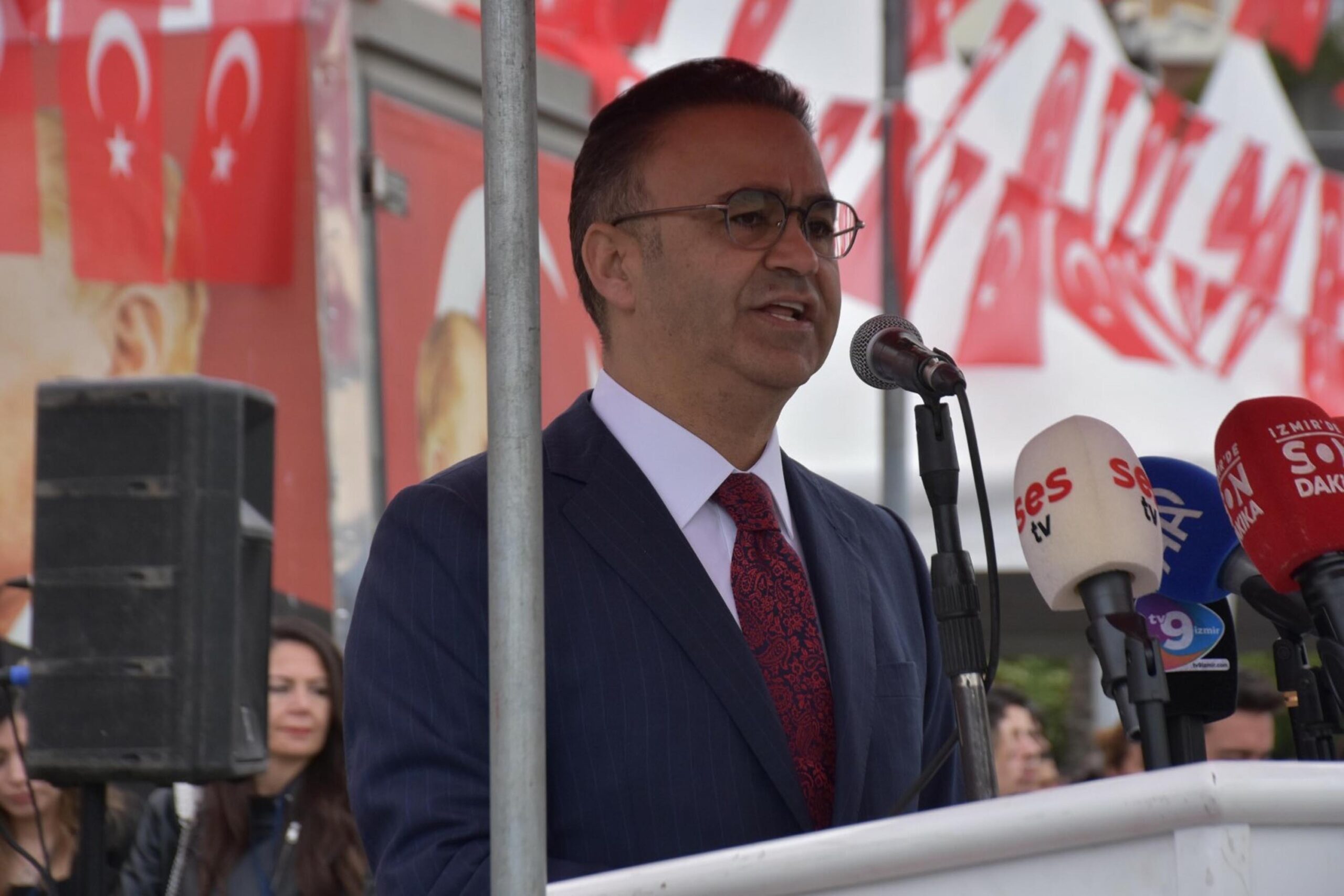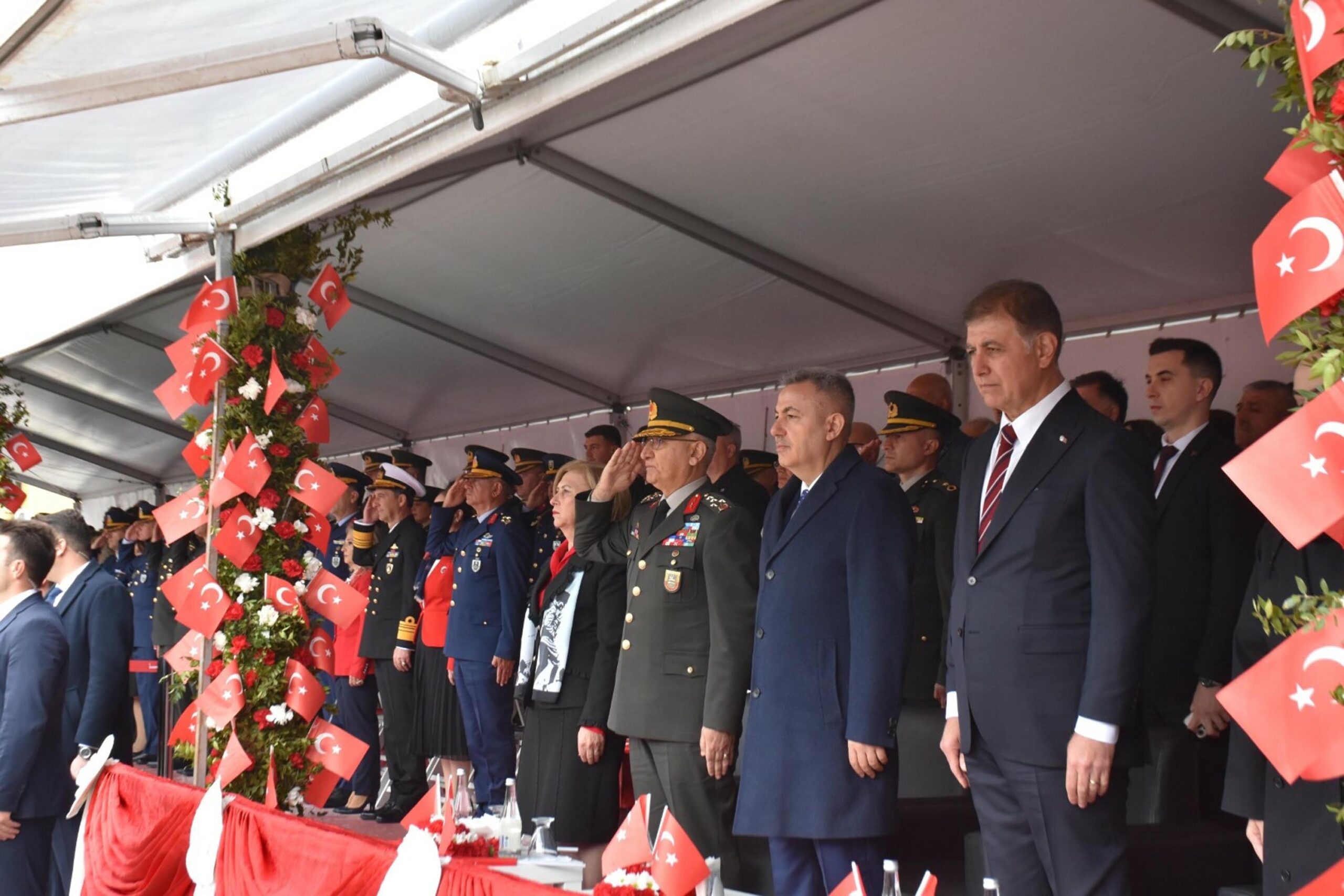 23 Nisan Ulusal Egemenlik ve Çocuk Bayramı ve TBMM’nin kuruluşunun 106’ncı yıl dönümü, kentte Cumhuriyet Meydanı’nda düzenlenen törenle kutlandı. Kutlamalar meydandaki Atatürk Anıtı’na İl Milli Eğitim Müdürü Ömer Yahşi’nin çelenk bırakmasıyla başladı. Kutlamalara İzmir Valisi Süleyman Elban, Büyükşehir Belediye Başkanı Cemil Tugay, Ege Ordusu ve Garnizon Komutanı Orgeneral İrfan Özsert, İl Milli Eğitim Müdürü Ömer Yahşi, siyasi partilerin ve sivil toplum kuruluşlarının temsilcileri, öğrenci ve öğretmenler ile vatandaşlar katıldı. Törende saygı duruşunda bulunuldu ve İstiklal Marşı okundu, bu sırada da öğrenciler tarafından Türk bayrakları göndere çekildi.