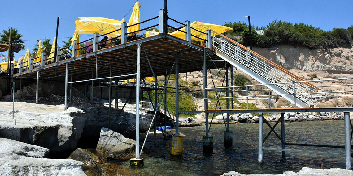 Burada insanlar gelip yüzüyorlar. İşletmenin yanında bulunan kapımız açık. Halkımız da o kapıdan gelip, kayaları kullanabiliyor. İskeleyi otel misafirlerimizin rahat denize girmeleri, halkla kaynaşmadan kendilerinin duşlarını alıp çıkması için yaptık. İskelenin olduğu yerde en ufak bir mağara yok. Doğal taşların üzerinde bulunuyor. Sadece otel müşterilerimiz için bunu yaptık. Zaten portatif bir iskele. Yazın kurulup, kışın kaldırılabilir” diye konuştu.