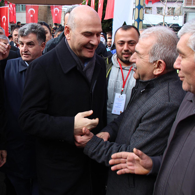 “Bizim büyüdüğümüz Türkiye böyle değildi” ifadesini kullanan Bakan Soylu, “Bizim büyüdüğümüz Türkiye, liderlerimizin alaşağı edildiği bir Türkiye’ydi. Acaba yarın ne olacak diye endişe ettiğimiz Türkiye vardı. Şimdi gelecek nesillerimize bırakacağımız Türkiye, ayakları üzerinde duran Türkiye’dir. Etrafındaki coğrafyaya umut olan Türkiye’dir. Söylediği söz adalet hükmünde olan Türkiye’dir. Anadolu insanının mayası sağlamdır. İyi bir istikamette gidiyoruz.