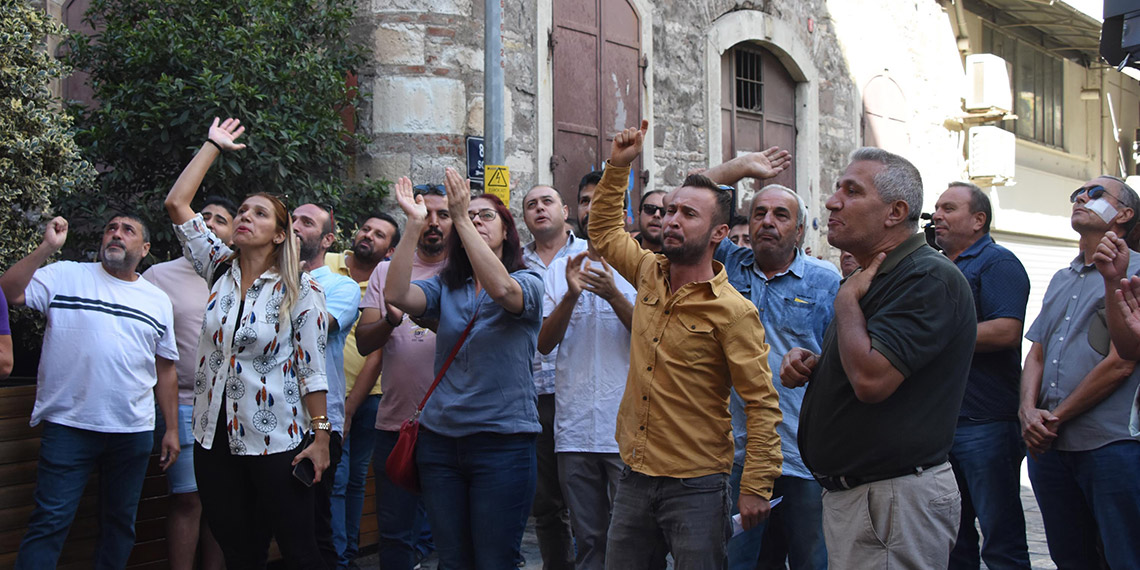 İzmir’de, iptal edilen ‘S plaka’ ihalesi nedeniyle mağdur edildiklerini öne süren bir grup esnaf, İzmir Büyükşehir Belediye binası önünde toplanıp eylem yaptı. S plaka için ödedikleri paraların geri verilmesini değil, plakalarını istediklerini belirten grup, kıyafetlerini çıkarıp, binanın önüne atarak, “Bizi böyle don, gömlek, atlet bıraktılar” diye bağırıp, tepkilerini dile getirdi.
