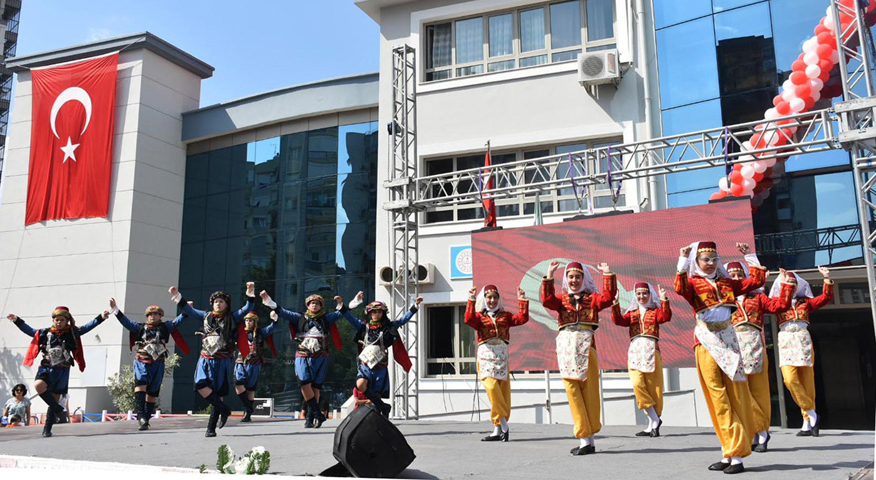 İzmir’de yeni eğitim-öğretim yılı ile beraber 2 bin 496 okulda, 738 bin 273 öğrenci için ders zili çaldı. Milli Eğitim Bakan Yardımcısı Petek Aşkar’ın da katıldığı programda öğrenciler, zeybek gösterisi sundu.