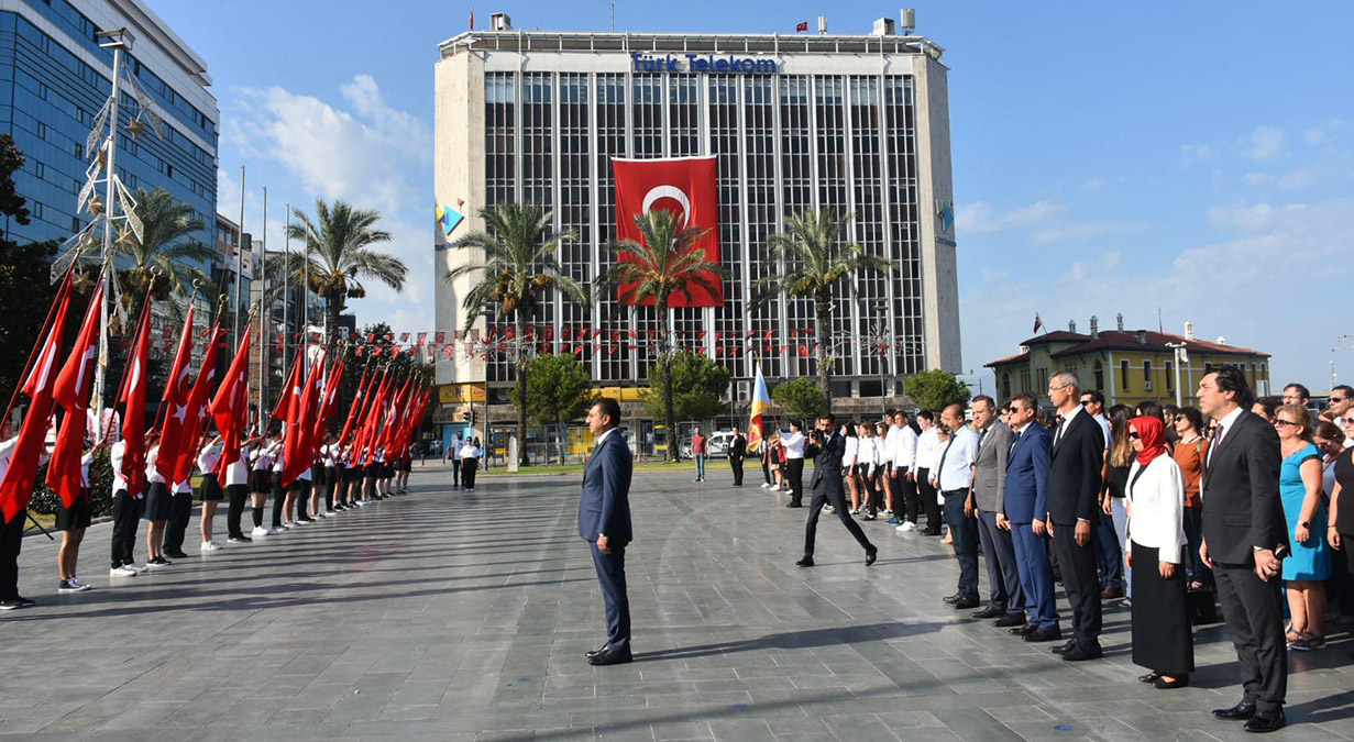 İzmir İl Milli Eğitim Müdürlüğü’nce 2022- 2023 eğitim ve öğretim yılı için Cumhuriyet Meydanı’nda tören düzenlendi. Törene İl Milli Eğitim Müdürü Murat Mücahit Yentür, kurum müdürleri, öğretmen ve öğrenciler katıldı. Saygı duruşunda bulunulması ve İstiklal Marşı’nın okunmasının ardından İl Milli Eğitim Müdürü Yentür, Atatürk Anıtı’na çelenk bıraktı.