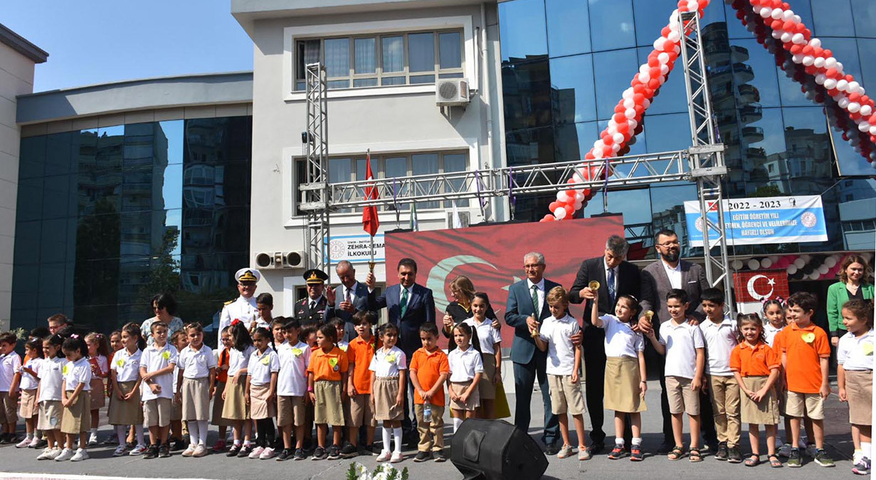 Cumhuriyet Meydanı’ndaki törenin ardından yeni eğitim- yılı için düzenlenen programa geçildi. Bayraklı Semahat Erişen İlkokulu’ndaki programa; Milli Eğitim Bakan Yardımcısı Petek Aşkar, İzmir Vali Yardımcısı Hulusi Doğan, İzmir İl Milli Eğitim Müdürü Murat Mücahit Yentür, askeri erkan, emniyet müdürlüğü yetkilileri, öğretmenler ve öğrenciler katıldı. Burada da konuşma yapan İl Milli Eğitim Müdürü Yentür, pandeminin ardından çocuk sesi ve neşesinin yayılacağı döneme başlayacaklarını belirtti. Yeni eğitim-öğretim döneminde yapacakları çalışmaları anlatan Yentür, yeni 26 köy okulu ve 22 köy eğitim merkezinin bu yıl faaliyete geçtiğini kaydetti.