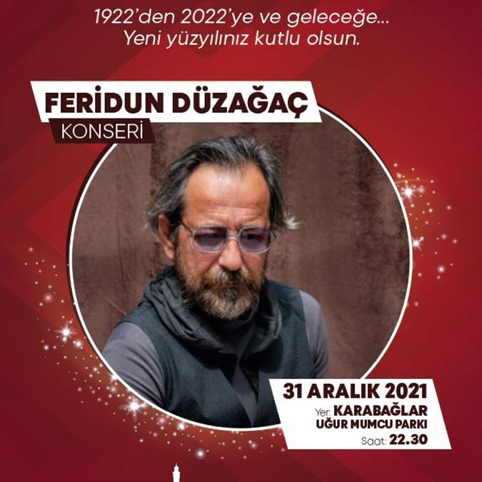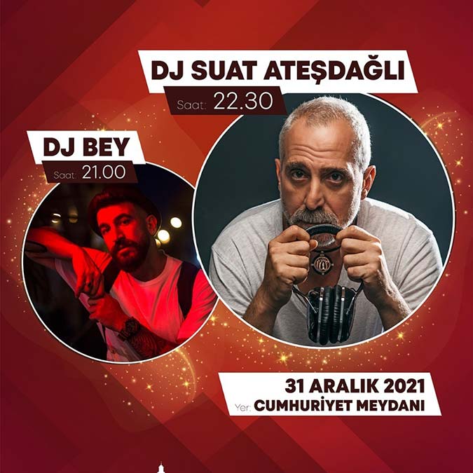 “İzmir’in yeni yüzyılı başlıyor” sloganıyla yeni yıl coşkusunu kentin her köşesine yaymayı amaçlayan İzmir Büyükşehir Belediyesi, 31 Aralık Cuma gecesi usta müzisyenleri ağırlayacak. Cumhuriyet Meydanı’nda 21.00’de “DJ Bey”in performansının ardından 22.30’da 1983’ten bu yana DJ kabininde olan Suat Ateşdağlı sahne alacak. Alternatif rock grubu “Madrigal” ise Buca Kasaplar Meydanı’nda 22.30’da İzmirliler ile buluşacak. Bornova Âşık Veysel Rekreasyon Alanı’nda yine 22.30’da “Gripin”, Karabağlar Uğur Mumcu Parkı’nda ise Feridun Düzağaç konseri var. Yılbaşı eğlencesi video mapping gösterileriyle renklenecek.