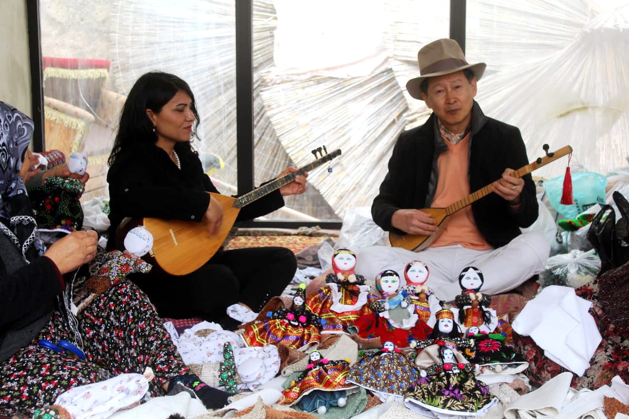 Müzik öğretmeni Hülya Şen ise “Sevgili dostum Takeshi İmamura ile geçen yıl Türkiye'ye geldiğinde Türk halk müziği icra etmiştik. O zaman ona Kapadokya'dan bahsettim. Kapadokya bölgesini çok merak ettiğini söylemişti ve şimdi sözünü tuttu, şu anda bizlerle birlikte. Dün Kapadokya’da Erdemli Vadisi’ni gezdirdik, Sayın Kaymakamım, Belediye Başkanım da bizlere eşlik ettiler. Takeshi Soğanlı’yı çok merak ediyordu. Soğanlı Çiçek Kadınları Kooperatifi ile birlikte bebek yaptılar. Zaten 12 bin 500 kilometreden yol gelme amacı buydu. Çok da keyif aldı, çok da başarılı bir bebek yaptı. Teknik olarak ilk başta zorlasa da buna çabuk adapte oldu, çok güzel bir bebek yaptı. İsmini de sevgili manevi kızı Filiz’in ismini verdi. Bugün çok eğlendik, birlikte turistlerimize müzik yaptık, bağlama çaldık. Çiçek kadınlarımız da çok eğlendiler, mutlu oldular, onore oldular” diye konuştu.