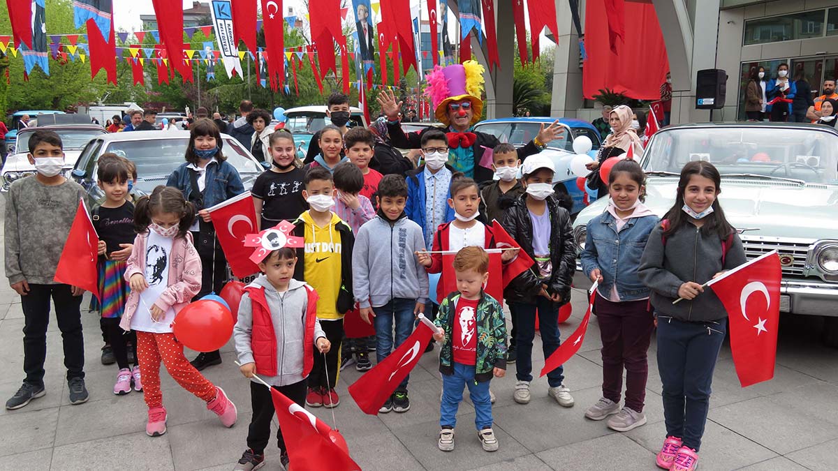 Çocuklar Türk bayrakları ve balonlarla süslenmiş 1950’li ve 1960’lı yıllara ait klasik otomobillere binerek Kadıköy sokaklarında 23 Nisan Konvoyu oluşturdu.