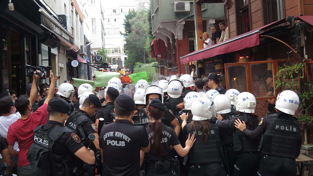 Sloganlar atarak yürüyen gruptakilerle, çevik kuvvet polisleri arasında arbede yaşandı. Arduç’un öldürüldüğü kafenin önüne gelen gruptakiler, basın açıklaması yaptıktan sonra ayrıldı.