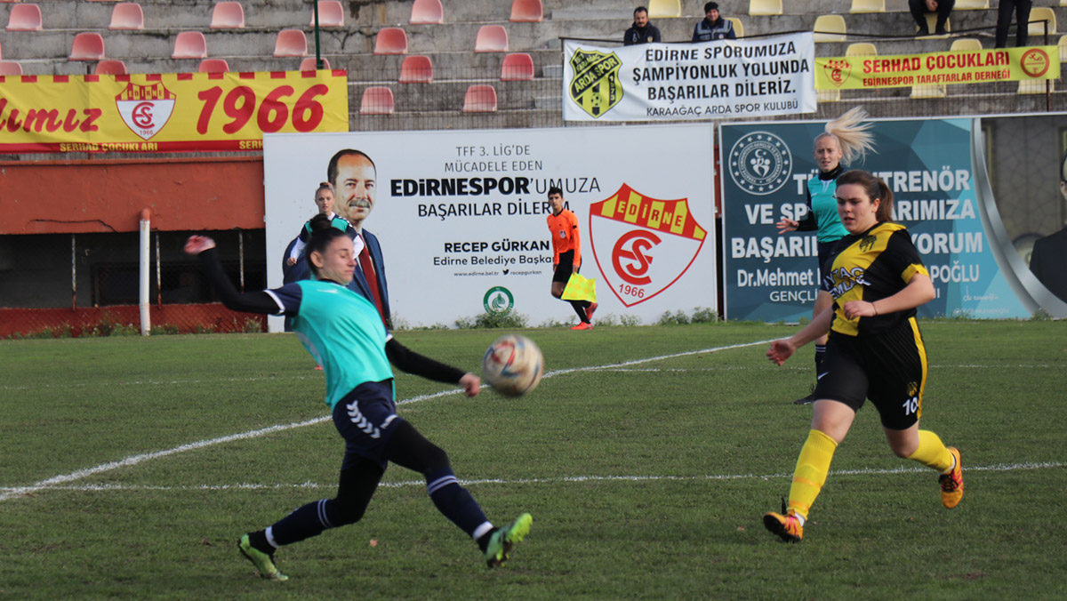Edirne’de, 25 Kasım ‘Kadına Yönelik Şiddete Karşı Mücadele Günü’ kapsamında, Karaağaç Ardaspor Kadın Futbol Takımı ile Bulgaristan’dan gelen Kadın Futbol Takımı dostluk maçında karşı karşıya geldi.