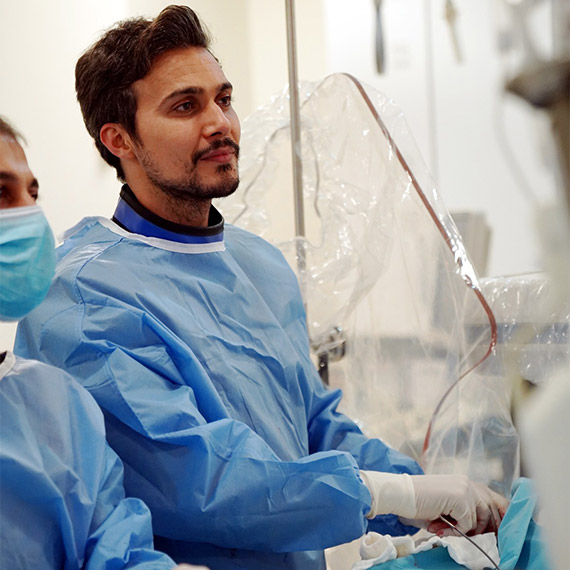Dr. Demir, İnanır’ın evde şikayetleri başladıktan yaklaşık 1 saat sonra 112’ye haber verilmesiyle hastaneye getirildiğini ve ambulansla hastanede tetkiklerinin yapılıp girişimsel radyoloji ekibinin tedaviye başlamasının yaklaşık 20 dakika sürdüğünü, evde şikayetlerinin başlamasından itibaren toplamda 1,5-2 saat sonra tedavisinin tamamlandığını vurgulayarak şu bilgileri verdi: “Bazı hastalarımız ambulansa geç haber veriyor. Bu da başarı şansını düşürüyor veya işlem başarılı olsa da sonrasında meydana gelebilecek komplikasyon riski yükseliyor. Buradaki en kritik nokta, hastanın hızlıca inme merkezine getirilmesi. Burada önce acil hekimi tabloya karar verir, ardından radyoloji tanısını gerçekleştirir (MR ve tomografileri çekilir vs.), sonra girişimsel radyoloji ekibi olarak biz hastanın tedavi durumuna göre devreye gireriz ve hızlı şekilde hastayı anjiyoya alırız.