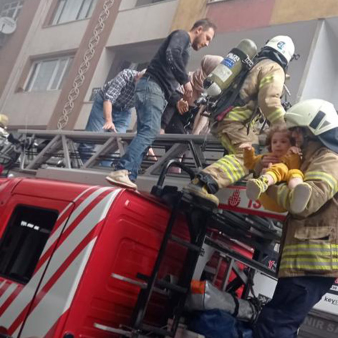 Apartman sakini Ömer Kele, “Biz aşağıda çalışıyorduk, bağırışlar duyduk. Dışarı çıktık, yoğun duman vardı. Üst katta bir aile vardı, 4-5 kişiler.Çocuk da vardı aralarında. İtfaiyeciler kurtardı” dedi.