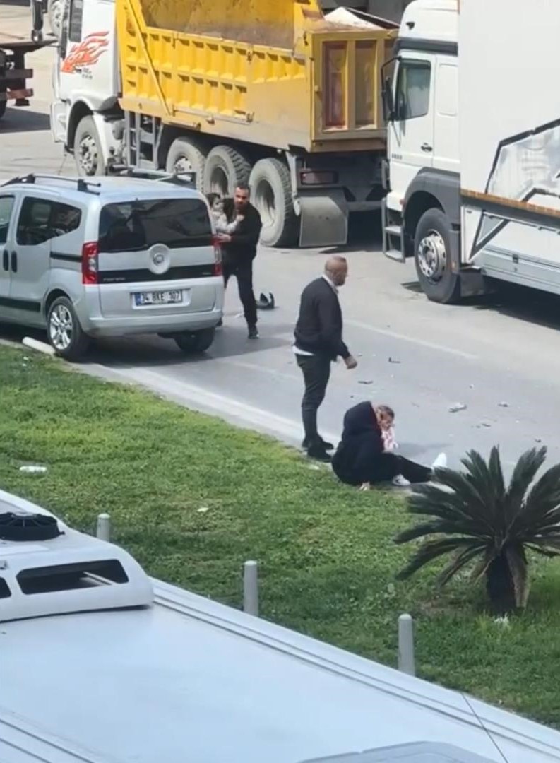 Kaza sırasında hafif ticari araçta yolcu olarak bulunan Şermin G. başından yaralandı. Kucağındaki bebeğiyle araçtan inen Şermin G. sinir krizi geçirerek kamyonet sürücüsüne bağırdı.Yaşananlar cep telefonu kamerasına saniye saniye yansıdı.