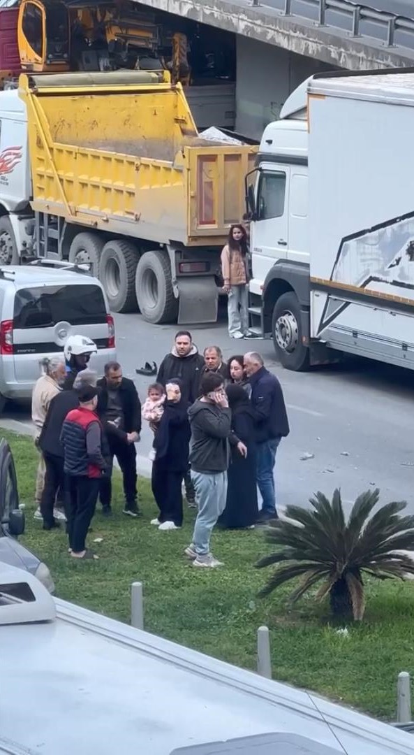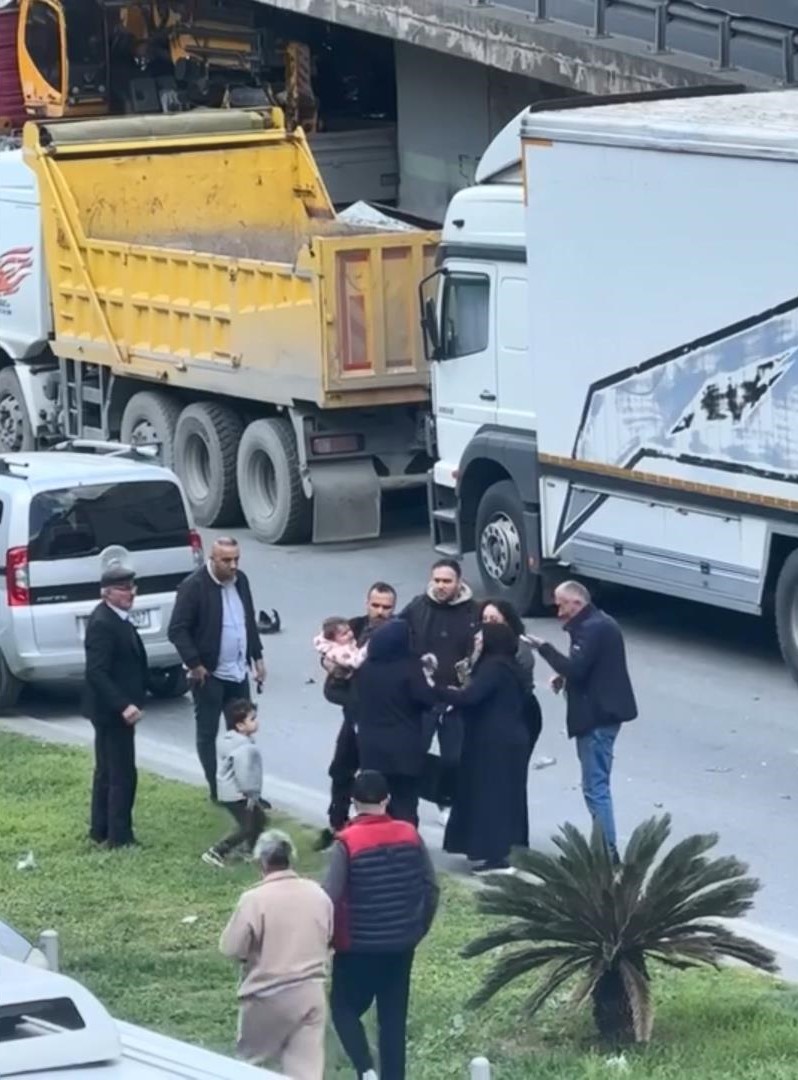 Kaza sonrası kamyonet sürücüsü başını tutarak araçtan indi. Çarpışma sırasında yaralanan Şermin G. ise kucağındaki bebeğiyle araçtan indi. G., kamyonet sürücüsüne bağırıp tepki göstererek, sinir krizi geçirdi. Kucağındaki bebeği alan bir kişi yaralı kadına sakin olması gerektiğini söyledi.