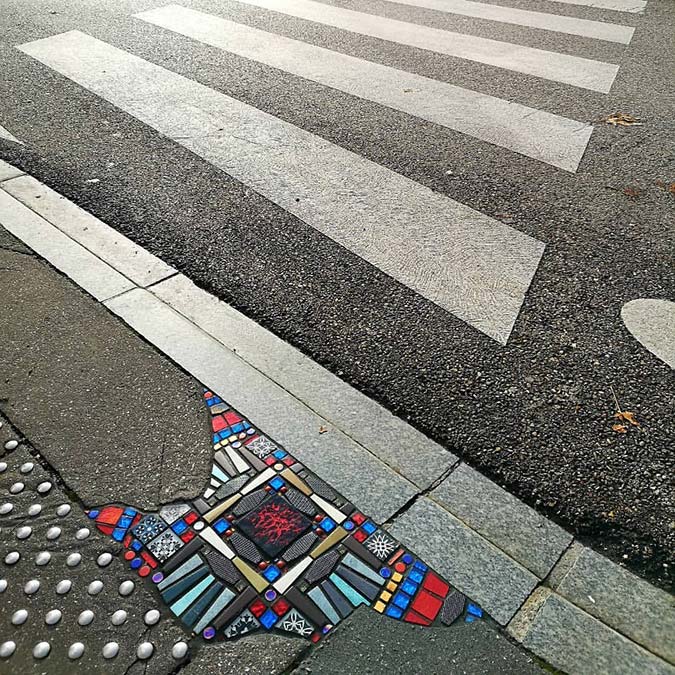 Fransa’da Ememem adlı mozaik sanatçısı, 2016’dan itibaren asfaltlar ve kaldırımlarda zamanla oluşan çatlakları mozaik sanatıyla dolduruyor.