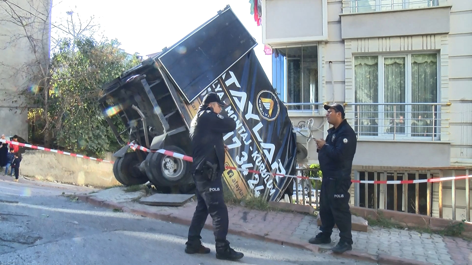 Eşyaların boşaltıldığı sırada içinde şoförü olmayan kamyon kaymaya başladı. Kamyonun kasasındaki iki kişi kamyondan atlarken, hızlanan kamyon bir apartmanın önündeki boşluğa düşerek durdu. O sırada yolda kimsenin olmaması olası bir faciayı önledi. İhbar üzerine olay yerine itfaiye ekibi sevk edildi. Olay yerine gelen vinç kamyonu bulunduğu yerden çıkardı.