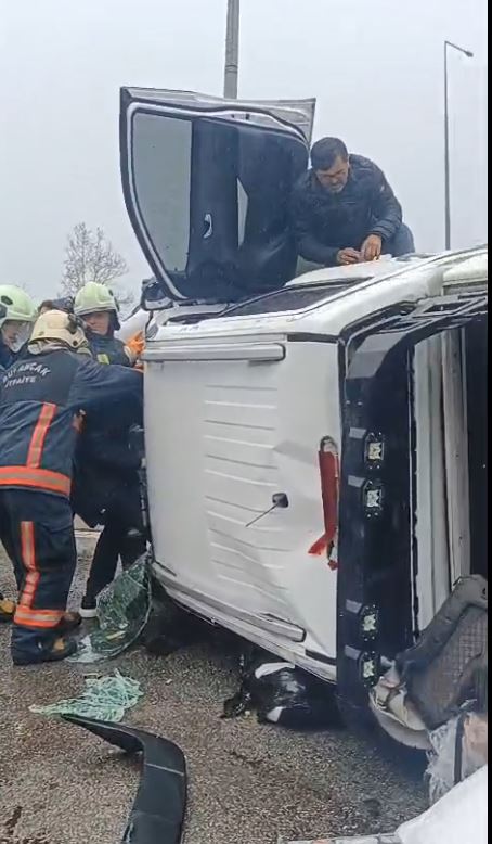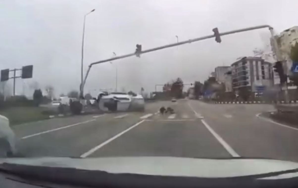 Öte yandan kaza anı yoldan geçen bir otomobilin araç kamerası tarafından görüntülendi. Görüntüde; kamyonetin sinyalizasyon direğine çarparak savrulduğu, yoldan geçen diğer sürücüler ile çevredeki vatandaşların, devrilen araçtaki yaralara yardım ettiği anlar yer aldı.