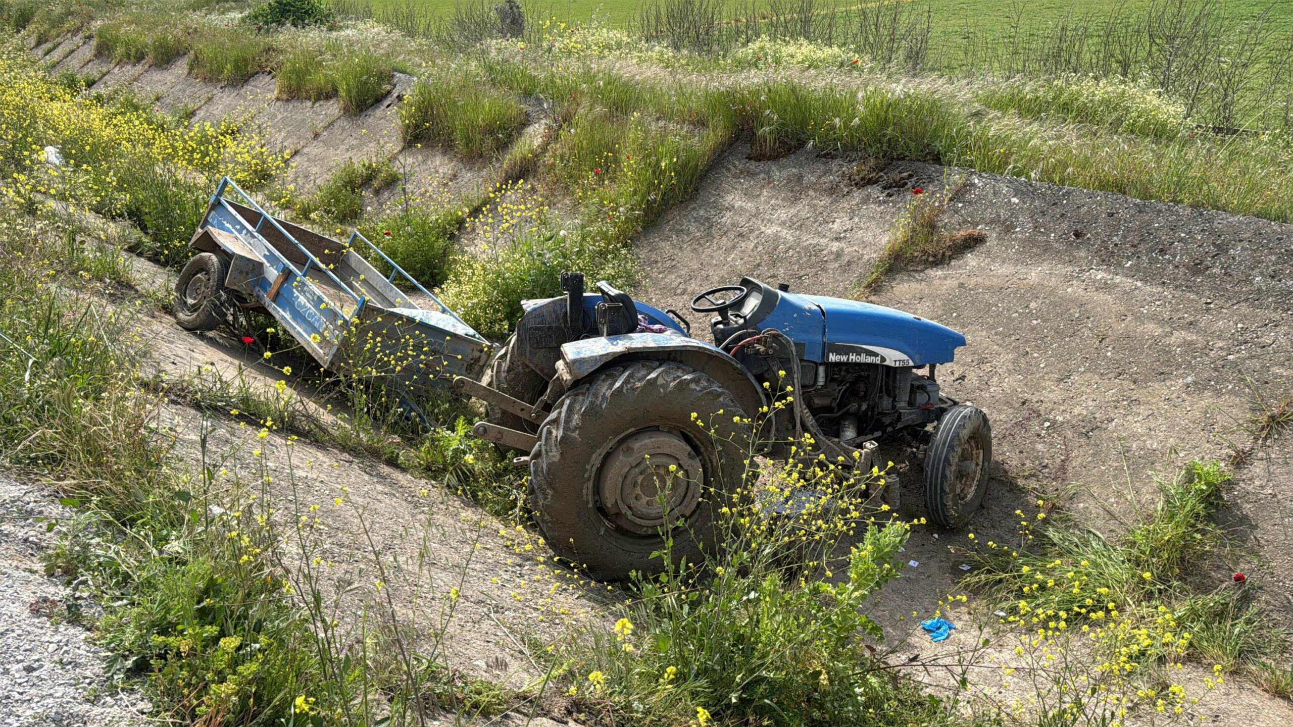 Manisa’nın Turgutlu ilçesinde seyir halindeyken ön lastiği fırlayan traktör kanala devrildi. Kazada yaralanan 2 kadın, kanaldan çıkarılıp kurtarıldı.