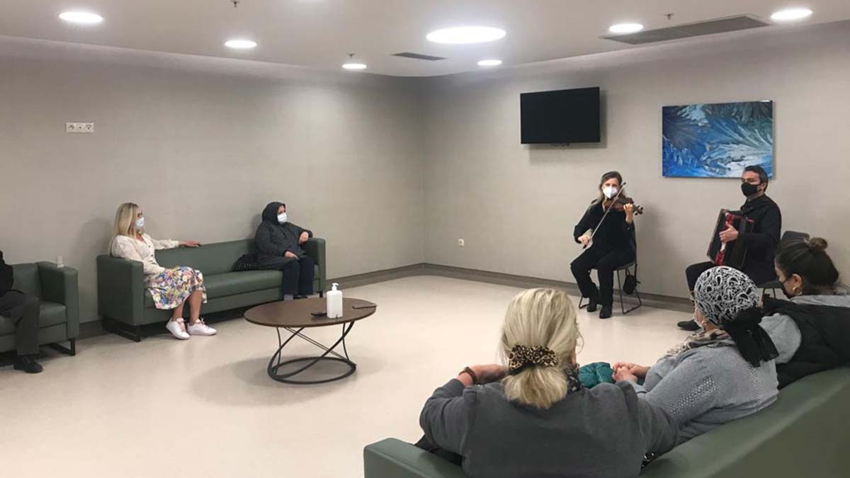 İstanbul’daki VM Medical Park Pendik Hastanesi’nde hastalara, keman ve mini piyano dinletisi yapıldı. Tedavi odalarında hastalara genellikle caz ve klasik müzik dinletisi yaptıklarını belirten Uzm. Dr. Tayfun Hancılar, sanatın doğrudan hastalığı iyileştirici etkisi olmasa da anksiyeteyi önleme özelliğiyle tedavide büyük kolaylık sağladığını söyledi. Dünyada görülen kanser sayısının her geçen gün daha da arttığına değinen Uzm. Dr. Hancılar, “Yapılan bir araştırmada, 1991 ile 26 yıl sonrası (2017) karşılaştırıldı. Buna göre kanser hastalarının yaşam oranı yüzde 29 arttı. Bu büyük artış” açıklamasını yaptı.
