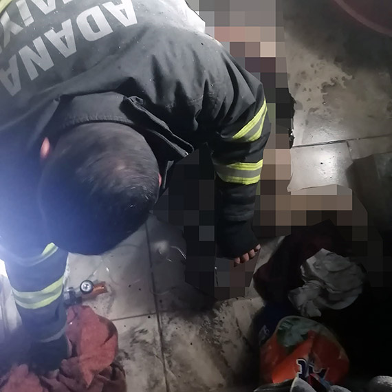 Komşularının ihbarıyla adrese polis, itfaiye ve sağlık ekipleri sevk edildi. İtfaiye ekiplerinin müdahalesiyle yangın, diğer evlere sıçramadan söndürüldü. Eve giren ekipler, Fadime K.’yi banyoda ağır yaralı buldu. İlk müdahalesi yapılan Fadime K., ambulansla Adana Şehir Eğitim ve Araştırma Hastanesi’ne kaldırıldı. Yanık Yoğun Bakım Ünitesi’ne alınan Fadime K., entübe edildi.
