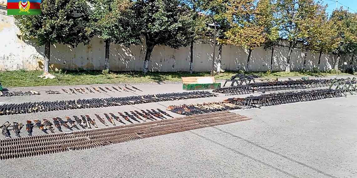 Öte yandan bakanlık, Hocalı’de ele geçirilen onlarca tüfek ve binlerce mühimmatın görüntülerini paylaştı.