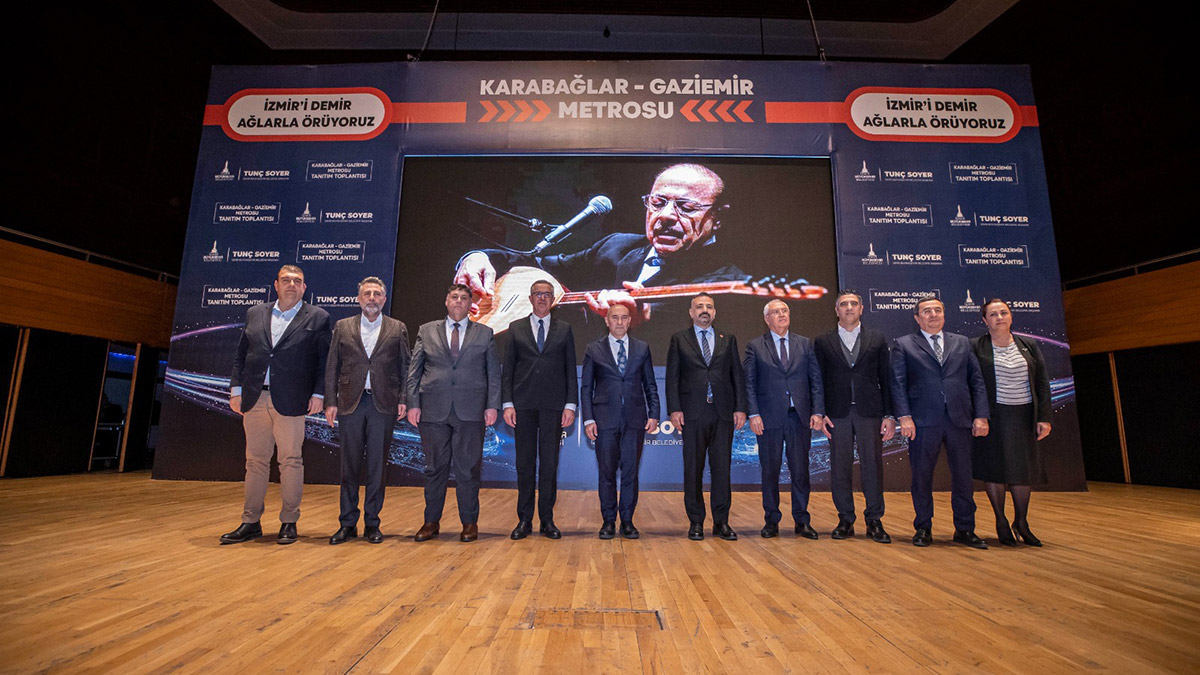 İzmir Büyükşehir Belediyesi, raylı sistem yatırımlarına devam ediyor. İzmir Büyükşehir Belediye Başkanı Tunç Soyer’in çağdaş ve çevreci ulaşım hedefi doğrultusunda Çiğli Tramvayı’nda sona gelen, Buca Metrosu’nun yapımına başlayan, Narlıdere Metrosu’nu ise bu yıl içinde açacak olan İzmir Büyükşehir Belediyesi kente yeni bir hat daha kazandırıyor. İzmir Hafif Raylı Sistemi’nin 6’ncı aşaması olacak Karabağlar-Gaziemir Metro Hattı, Ahmed Adnan Saygun Sanat Merkezi’nde yapılan törenle tanıtıldı.