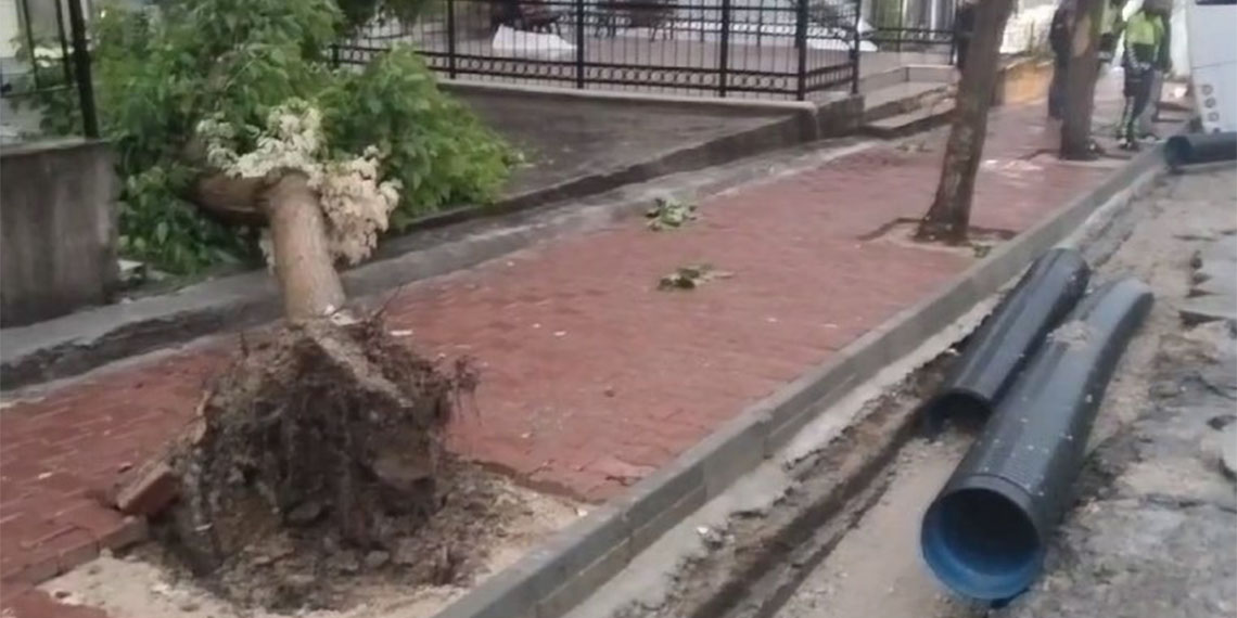 İlçede akşam saatlerinde başlayan gök gürültülü sağanak hayatı olumsuz etkiledi. Bazı ev ve iş yerlerini su basarken bir tarihi konağın istinat duvarı çöktü. Şiddetli rüzgarın da etkisiyle, Emek Mahallesi’nde kaldırımda bulunan bir ağaç devrildi. Sağanak caddelerde su birikintilerine sebep olurken, sürücüler yolda ilerlemekte güçlük çekti.