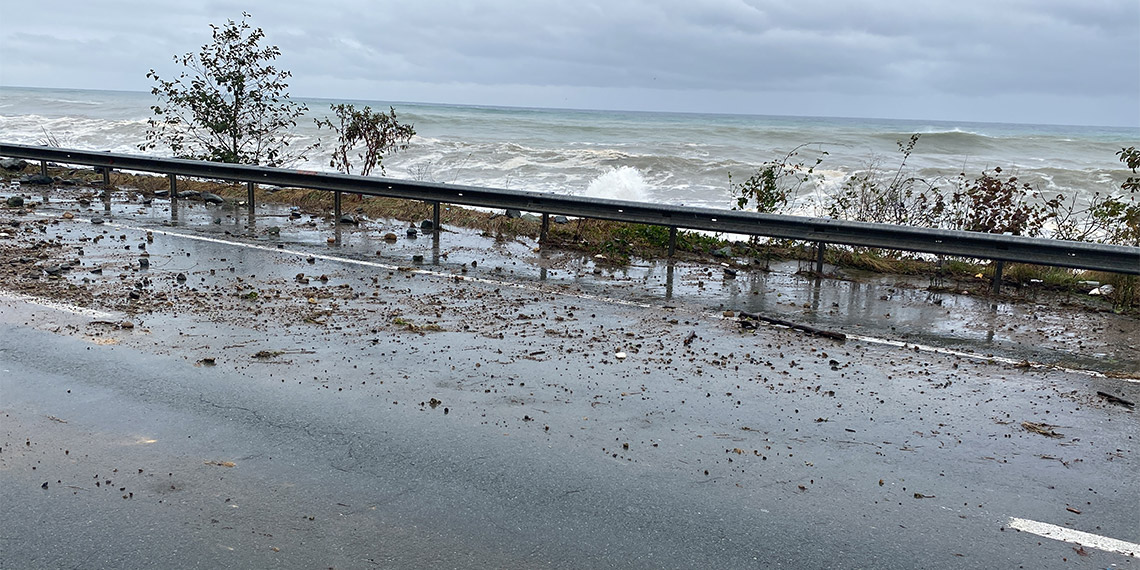 Doğu Karadeniz’de dün gece başlayan ve devam eden sağanak, yaşamı olumsuz etkiledi. Etkili fırtına nedeniyle Karadeniz’de metrelerce yükseklikte dalgalar oluştu. Sahillere vuran dalgalar kıyıyı aşarak Karadeniz Sahil Yolu’na ulaştı. Yer yer su birikintileri ve göllenmelerin oluştuğu yolda sürücüler zor anlar yaşadı.