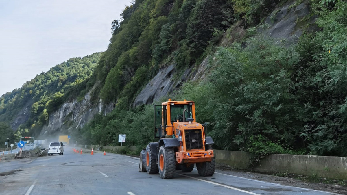 Artvin’in Hopa ilçesinde Karadeniz Sahil Yolu’nda heyelan meydana geldi. Heyelanda uluslararası taşımacılık yapan bir TIR hasar gördü.