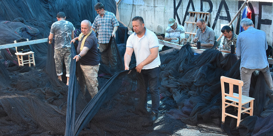 Karadeniz’de balıkçılar, denizlerde av yasağının kalkacağı 1 Eylül’de yeniden ‘Vira Bismillah’ diyebilmek için ağlarını onarmaya başladı.