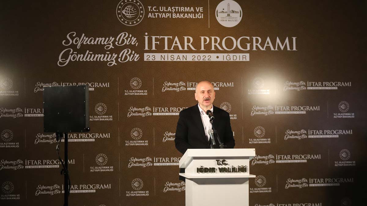 Ulaştırma ve Altyapı Bakanı Adil Karaismailoğlu, Iğdır’da sokak iftarına katıldı. Burada konuşan Karaismailoğlu, “Bölgemizdeki biri bitip diğeri başlayan savaşlara rağmen birliğimizi koruyor, geleceğimizi düşünecek yatırımları bir bir hayata geçiriyoruz” dedi.