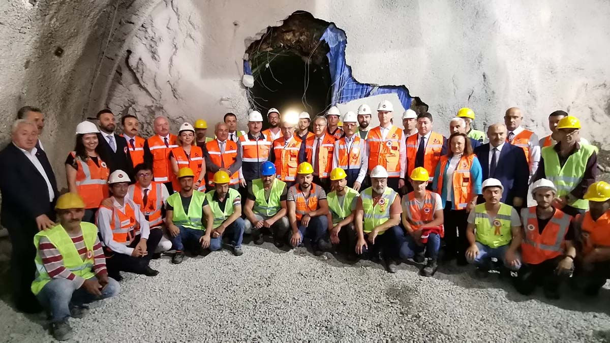 Bakan Karaismailoğlu, konuşmasının ardından iş makinesiyle tünele son darbeyi vurarak kazı çalışmaları tamamlanan 440 metre uzunluğundaki çift tüplü Akçetepe-1 tünelinde ışığın görünmesini sağladı.