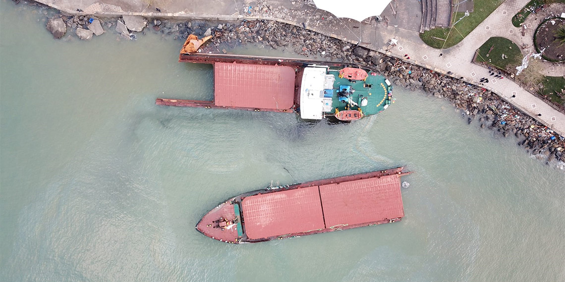 Ereğli ilçesinde 19 Kasım’da etkili olan kuvvetli fırtına ve yağışların etkisiyle limanda sürüklenmeye başlayan ‘Pallada’ isimli kuru yük gemisi, ikiye bölündü ve sahil bandındaki yürüyüş yoluna çarparak durabildi. Karaya oturan geminin 13 mürettebatı tahliye edilirken, can kaybı yaşanmadı.