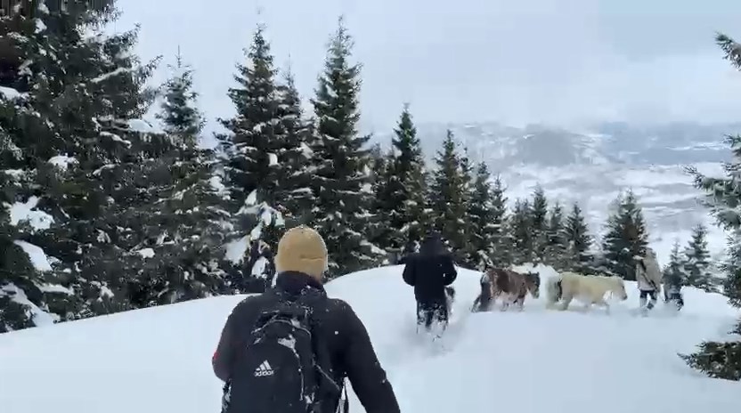 Artvin'in Şavşat ilçesinde yaklaşık 3 aydır kayıp olan 2 at ve 1 tay, köy gençlerinin karlı dağlarda dronla yerlerini tespit etmesinin ardından 10 saatlik zorlu bir çalışmayla kurtarıldı.